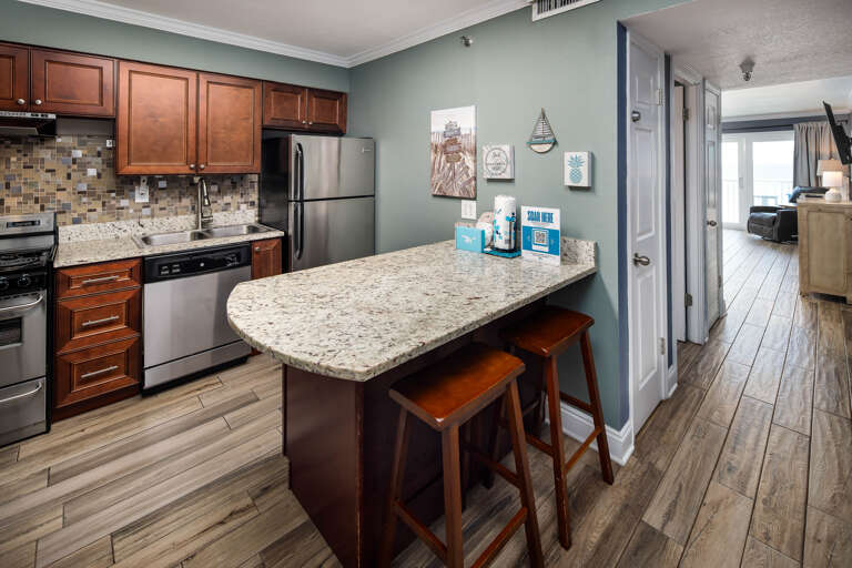 Welcome to Islander 503! This beautifully decorated, coastal themed studio is perfect for a pair of 2 or a group of 4! Enter into the full service kitchen with stainless steel appliances and bar seating. Make your way past the full updated bathroom until you reach those gorgeous gulf views! The living area contains a queen size bed, pull out sleeper sofa couch, and a dining table to enjoy your meals with a view! There is a mounted flat screen TV for all your viewing pleasure and a PRIVATE beachfront balcony. Enjoy your morning coffee out on the balcony or sit back, relax, and watch the beautiful Emerald Coast sunsets. Experience the perfect beach getaway at Islander Beach Resort 503!