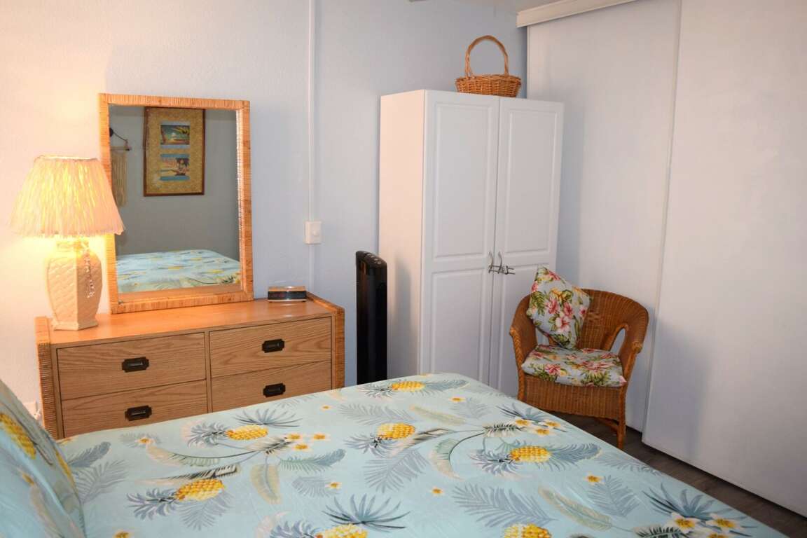 Really enjoyed this condo. It has everything you need inside. Fully equipped kitchen. Ceiling fan and tower fan in the bedroom. Snorkeling gear and body boards. The location is across the street from the beach, and the town is just down the street with lots of shops and places to eat. Would stay here again.