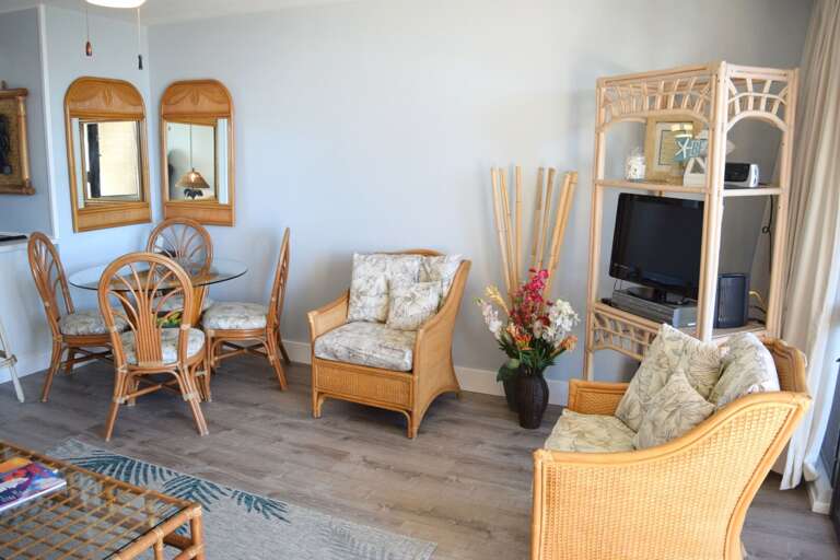 Maui Vista 1313 has a beautiful ocean view and tropical furnishings that will remind you that you’re in Maui even when the curtains are drawn! There is lots of comfortable seating options, dining table for four, private lanai and washer and...