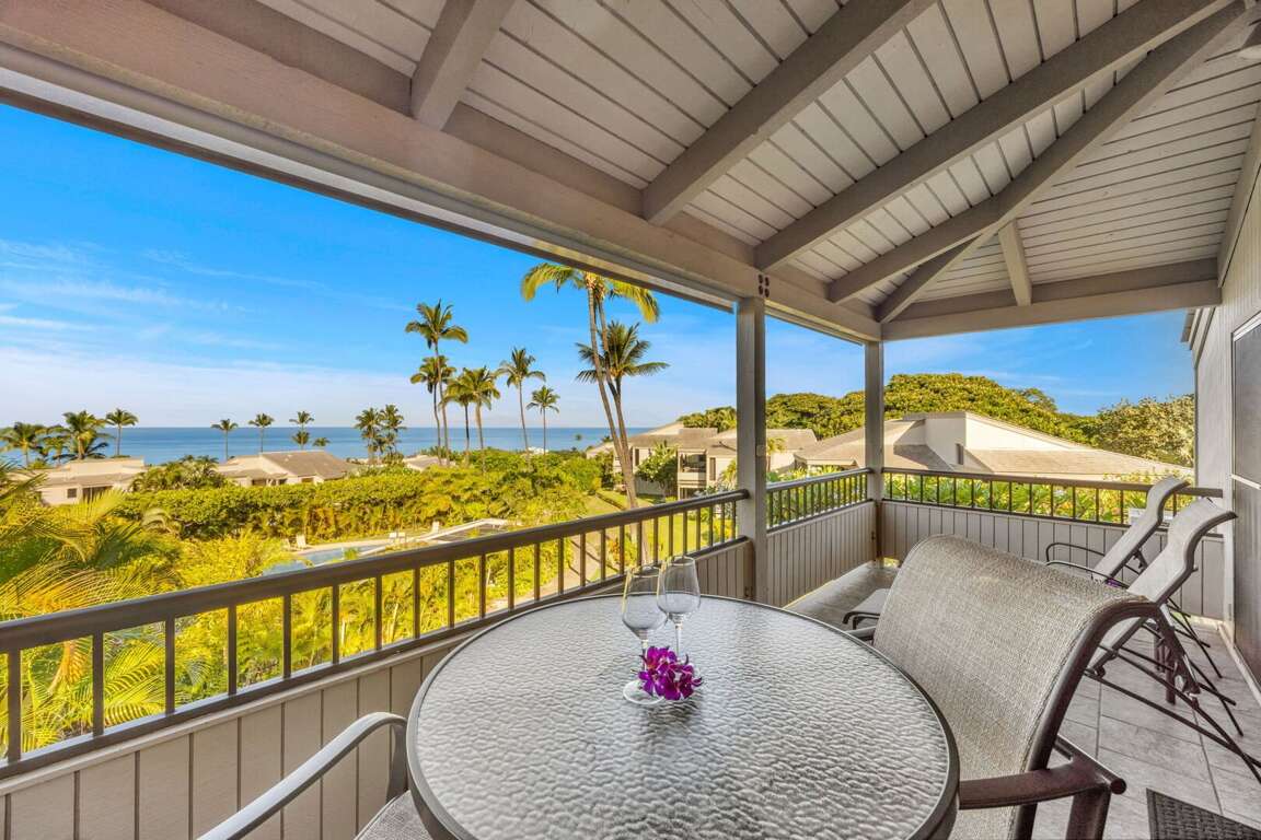 <strong>Lanai:</strong> The lanai affords spectacular views of the ocean and vibrant grounds of the property. Comfortable seating arrangements in this shaded lanai drive home the feeling of Hawaiian aloha, as you can immerse yourself in its beautiful atmosphere from the privacy of your own condo!