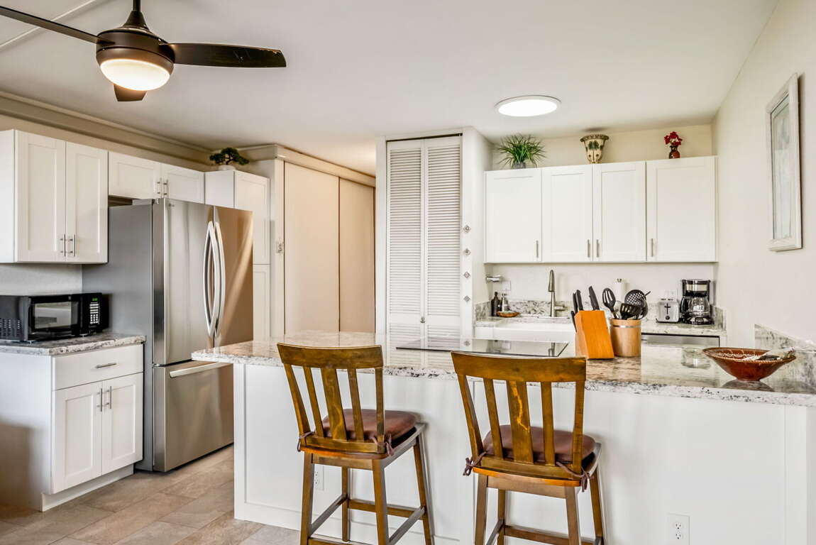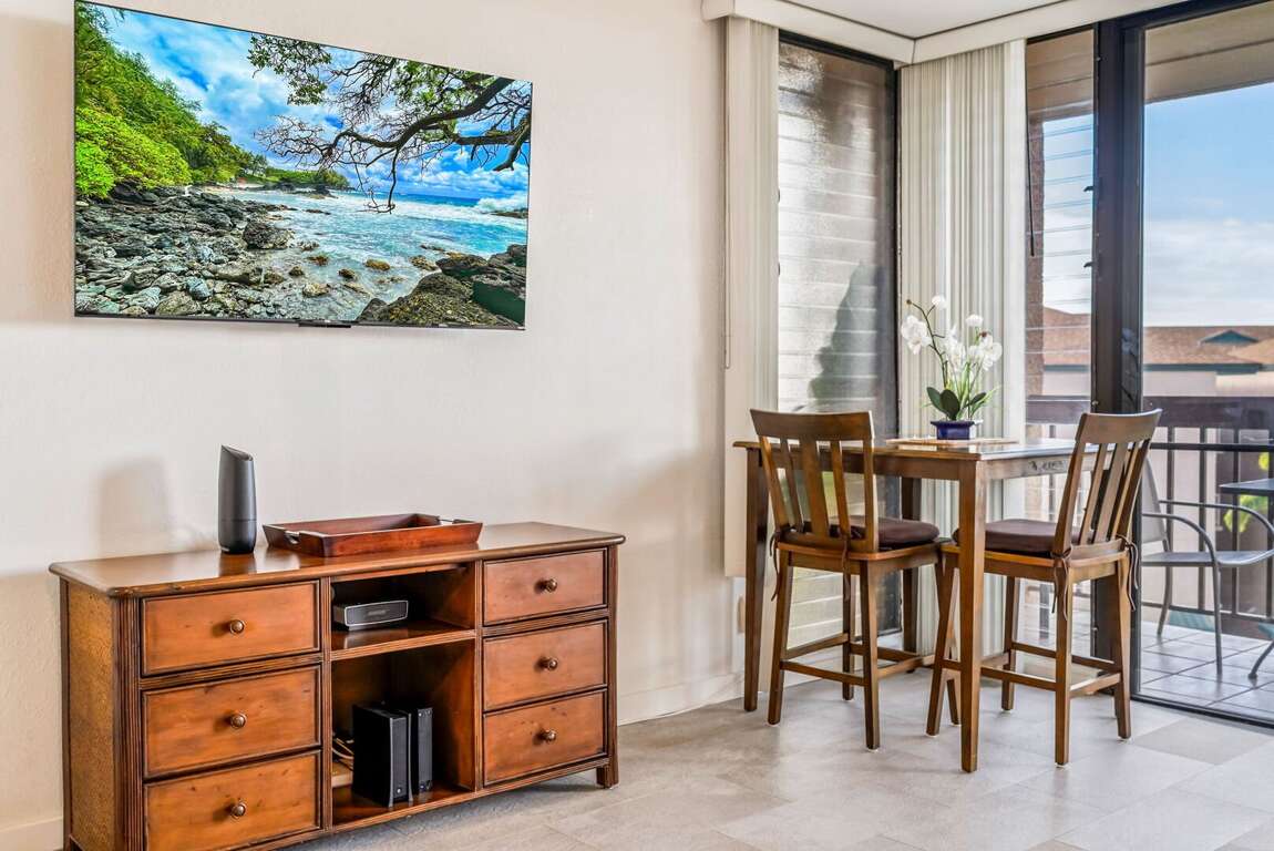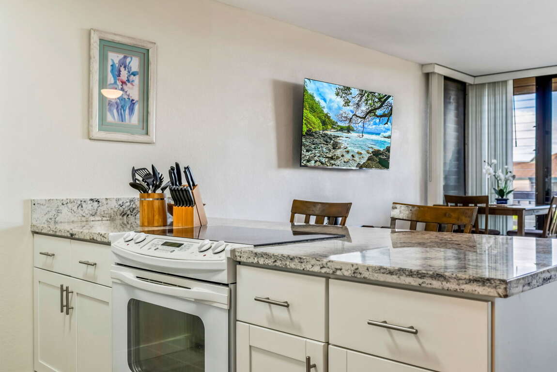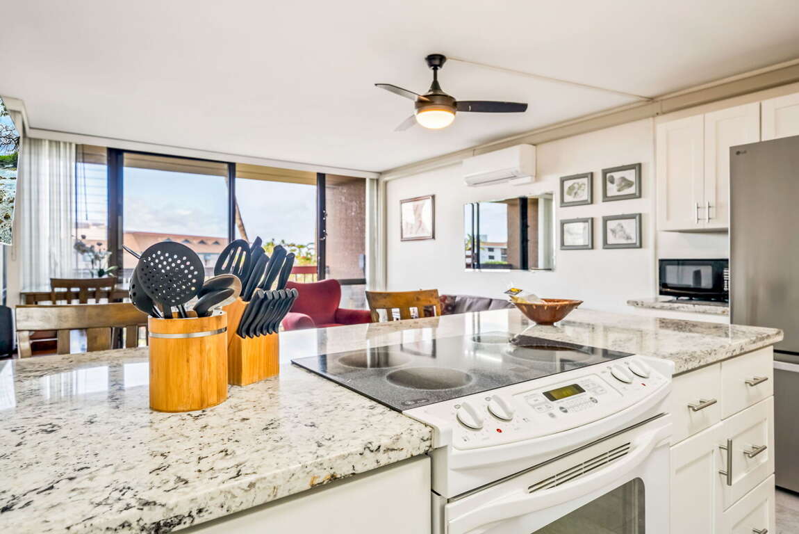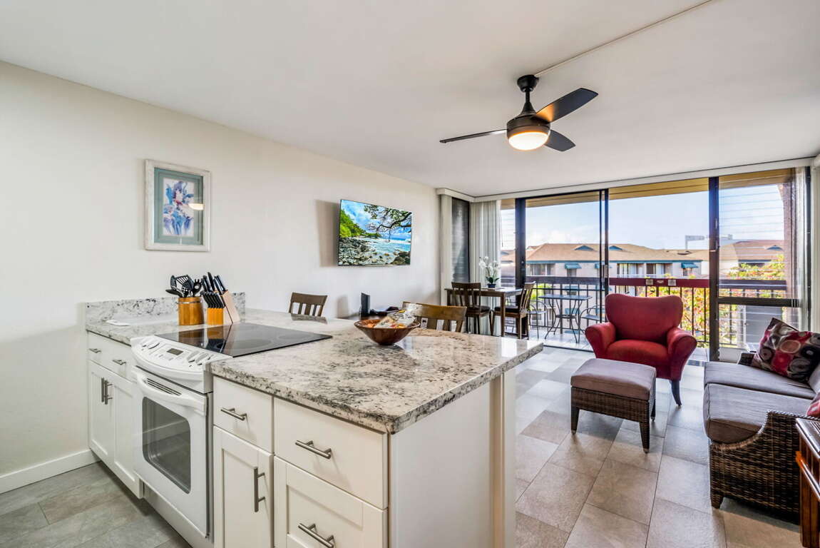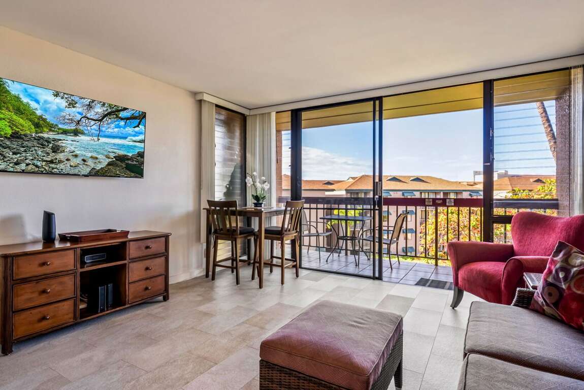 As you step inside, you'll be greeted by a warm and welcoming ambiance, featuring a cozy living area that opens up to a private lanai with a partial ocean view. The condo comfortably accommodates up to four guests, with a spacious bedroom and a sofa bed in the living room, ensuring everyone has a restful place to unwind after a day of adventure.<br />
