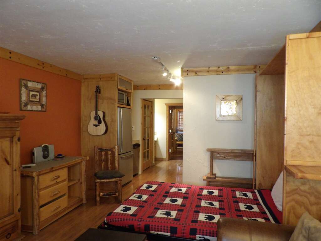 This ski-in-ski-out lodging at the Taos Ski Valley base is private and comfortable, perfect for a quick getaway or a nice long retreat. Cozy up after a day on the slopes for a warm, restful night in your own little place on the mountain. Wake up to some of the finest views in the Valley, looking North toward Gold Hill. Ski right up to the condo door! Discover world class skiing at Taos Ski Valley while staying in this lovely, clean, one bed condo that easily accommodates 4 with a comfortable Murphy bed. Just above the ski school with views of the valley, you will be well situated to take advantage of all that Taos Ski Valley has to offer. Come check out the new gondola and beginner lift that loads just below the condos down our ski out pitch and ski the all new beginner terrain and access the base and the new for 2018 High Speed Quad Lift 1. The Ski Valley has truly never looked or felt better. If you did not get to ski Kachina last year, come back, there is nothing quite like it in the Rockies. Taos still has the steeps that experts crave but has worked hard to provide more of the easy terrain that the family needs. Beginner skiers are not advised to ski out. Just steps from our summer parking area, this condo has no stairs, just one step up to the porch, and is fully furnished with all you need to have a great vacation, including a fully equipped kitchen and plenty of room for all the gear. Hardwood floors throughout and two bathrooms to accommodate the crew, this condo is highly versatile. 16M Wifi. Bring the family or sneak away for a couples weekend. Be the first on the lift when you stay in Taos Ski Valley for the price of staying in town, make your own meals and avoid resort prices! Want a night off from the kitchen? Head out to eat at one of Taos Ski Valley's world-class eateries! We will guide the way. Clean and cozy, Snow Bear Condominiums offers guests convenient lodging in Taos Ski Valley. It takes four wheel drive to reach our property in the winter time, so be advised.