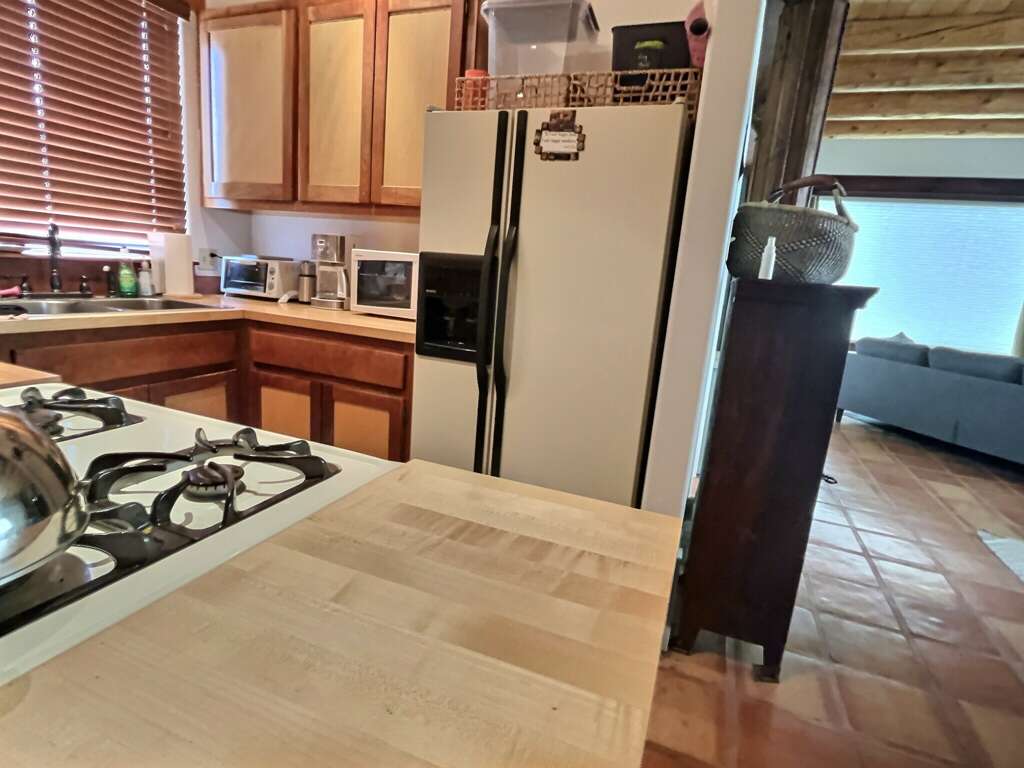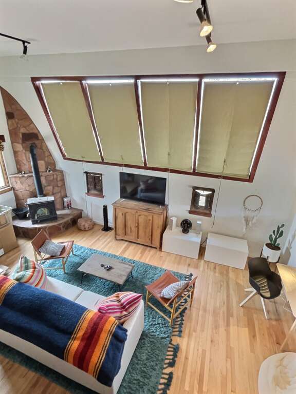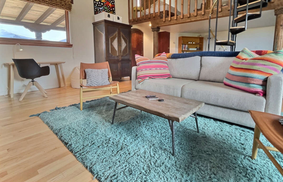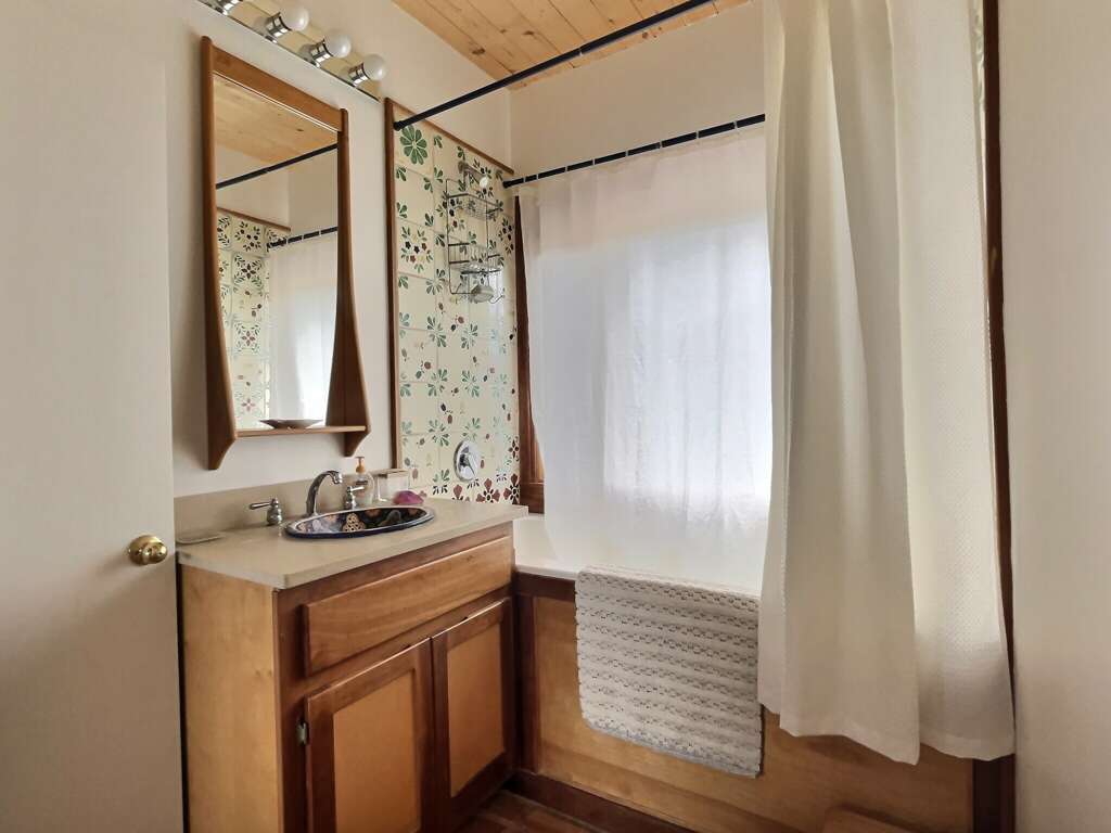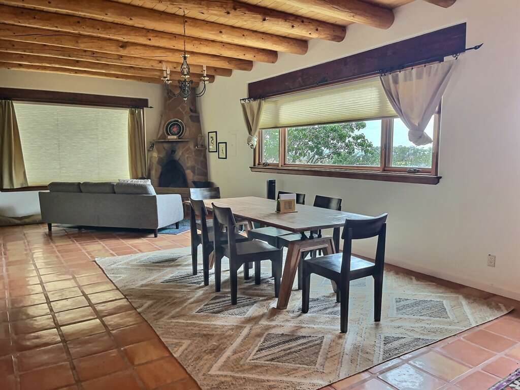 Get ready to explore the best of Arroyo Seco, Taos and Taos Ski Valley from this special perch perfect for a small family or two couples. The unique adobe home featuring several hand carved wood doors and other unusual architectural details sleeps 4 adults, or 2 adults and up to younger 3 children. It is situated on a private dirt road just minutes from the shops, galleries, and restaurants of quaint artisan Arroyo Seco. Newly furnished custom home is comfortable, private and well-appointed. Open floor plan means guests should all be comfortable with one another as the only doors in the house are for entry/exit and on the two bathrooms, or to separate two distinct living areas with bedroom using a set of large wooden doors.In the front space is a large living space, cafe dining space, desk and chair, loft sleeping space, kitchenette, and bathroom.Upstairs loft with queen bed is reachable only by a spiral staircase, so plan accordingly as the spiral staircase is not safe for young children or those with any balance or mobility issues. In the back side of the home is a full kitchen, large dining area, queen sleeping space with privacy curtain, sofa and fireplace, and a full bathroom with tub. The exterior features a large flagstone patio with sturdy patio furniture, gorgeous hot tub, covered portal and landscaped yard. The entry porch is stone and soaks up the sun in the afternoon so it's a great late day sitting porch, especially in fall and winter.Taos County Permit # HomeOCC-23-016