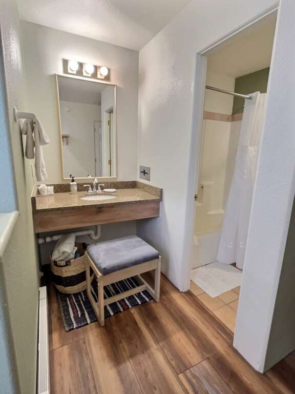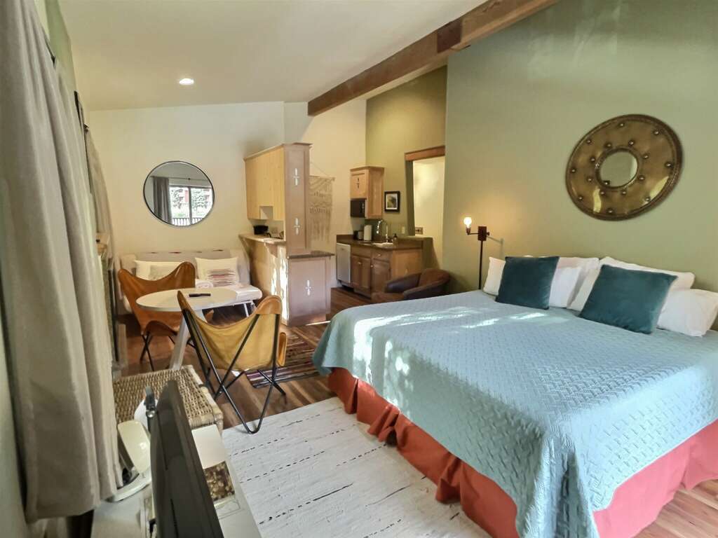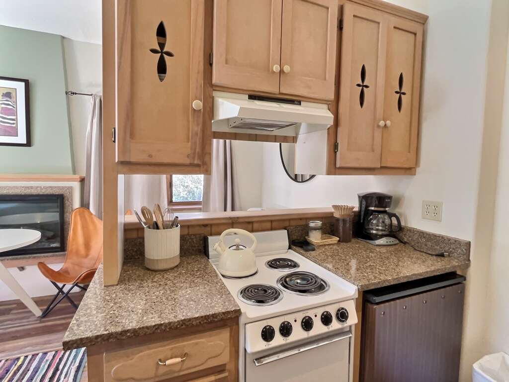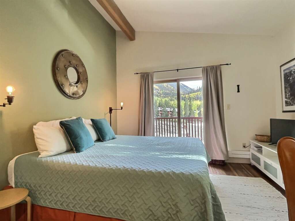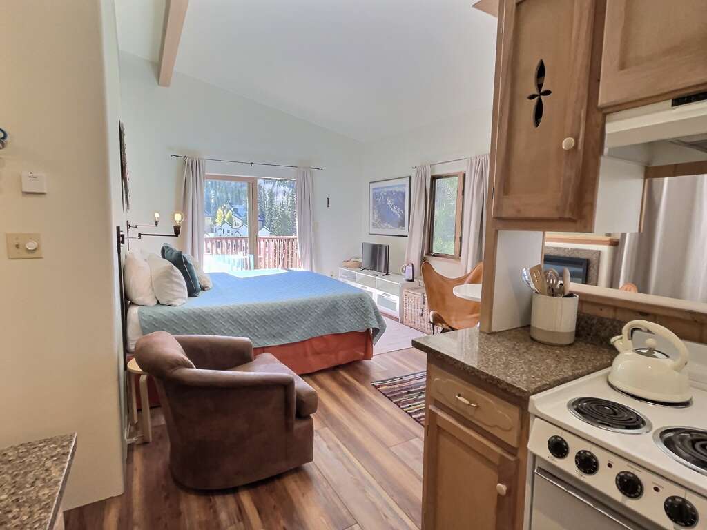 Abode Vacation offers this impeccably outfitted studio condo with full bath and kitchenette sleeping 3 with sun deck steps from Lift 1. Everything you need for a fantastic ski trip, this 4th floor condo right in the heart of the resort village is ready to give you a great night's rest, a quick coffee and breakfast in the room, and an easy trek to grab first chair with no car or parking shuttle needed. Store skis on property in a dedicated ski locker so there's no need to go to the car each day. After the powder, take a load off with a hot shower, and hit the aprs scene in Taos' picturesque alpine village with several wonderful restaurants and bars to enjoy.Guests may drop off luggage in the loading zone at the property and then will need to drive one tenth of one mile to free public parking, there is also available designated overnight guest parking for one vehicle in an attended lot during ski season only.