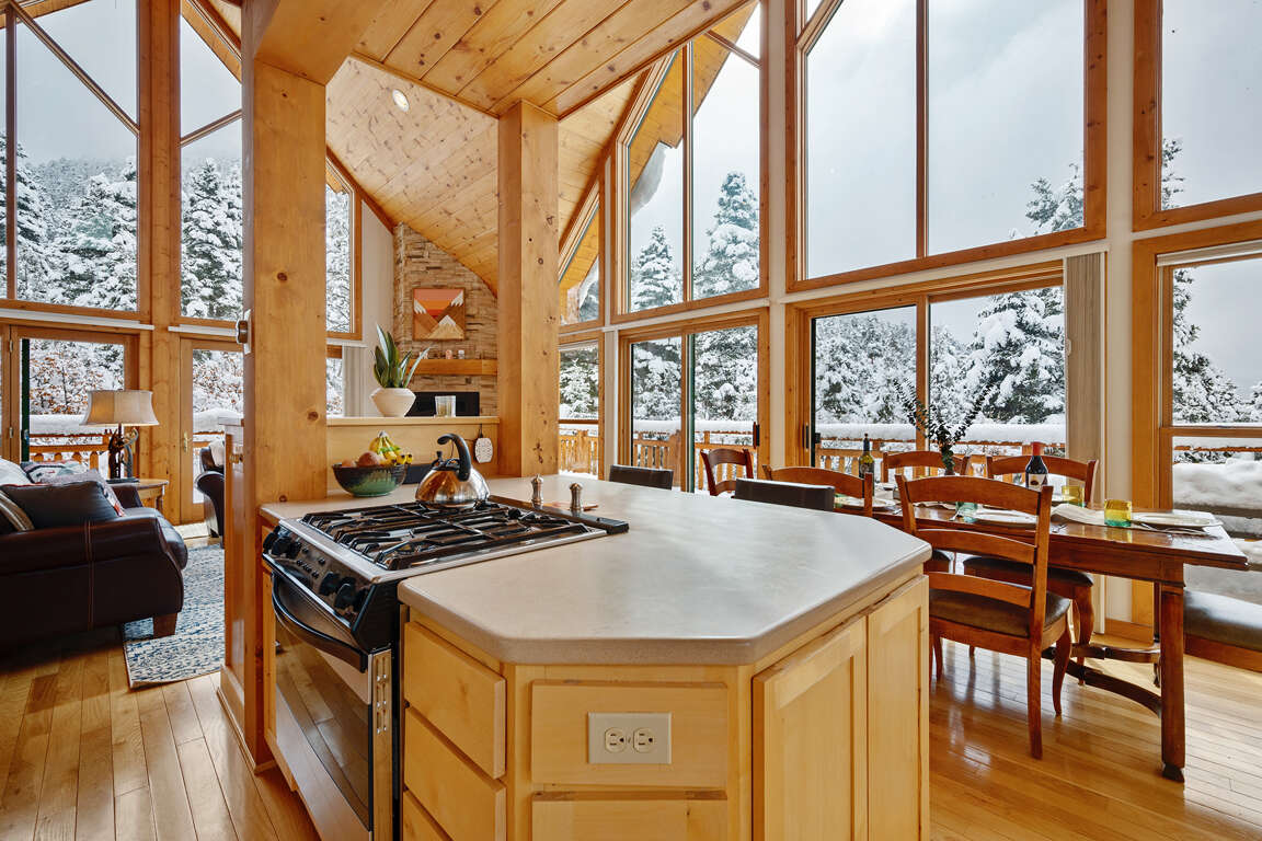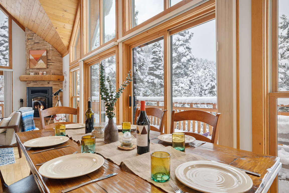 Abode offers this incredible three-bedroom three-bathroom mountain chalet property with massive mountain views in a secluded woodland setting. The three-level home is highlighted by a magnificent master bedroom, an open floor plan living space and a loft for entertaining. Soak in the hot tub after a day of skiing or cozy up to one of the home's two fireplaces. In the summer and fall, walk out the front door and easily access the El Salto del Agua trail. The home is fully stocked and includes a two-car garage.Taos County Permit # HomeOCC-23-087