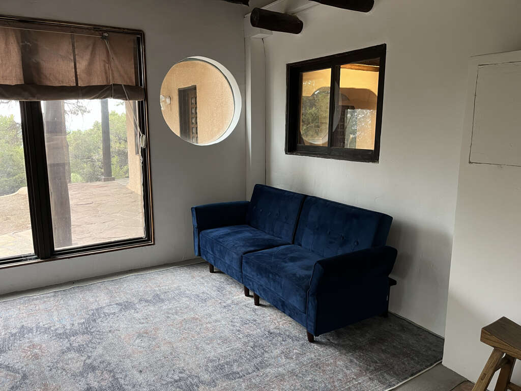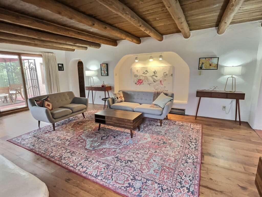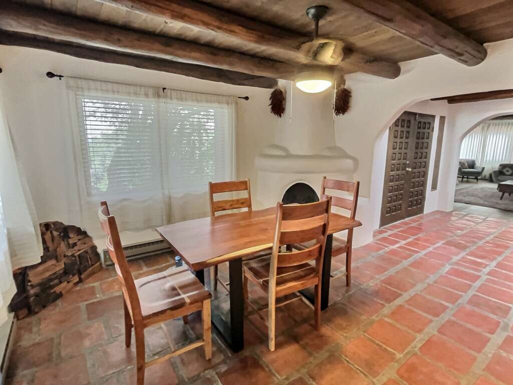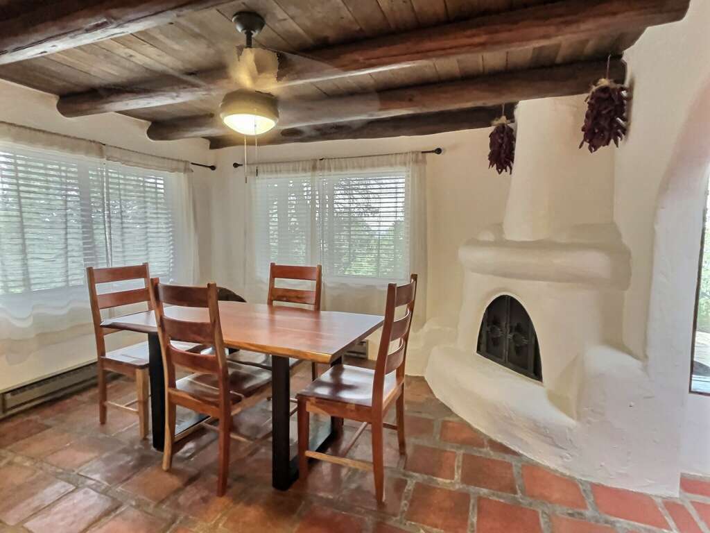Abode Vacation offers Los Pions, a three bedroom, two bathroom Adobe home on pine forest land just outside of Taos, New Mexico. A spacious adobe home with white plaster walls, dark wood vigas, and Saltillo tiles accented by two large traditional New Mexico fireplaces in the dining area and the living room. Bedrooms feature carpet and ample closet space.Kitchen features plenty of pantry storage and a large refrigerator.This home is not pet friendly.Taos County Permit # HO-52-2022