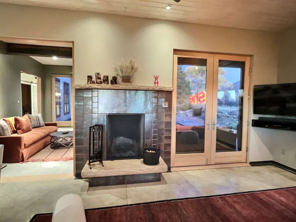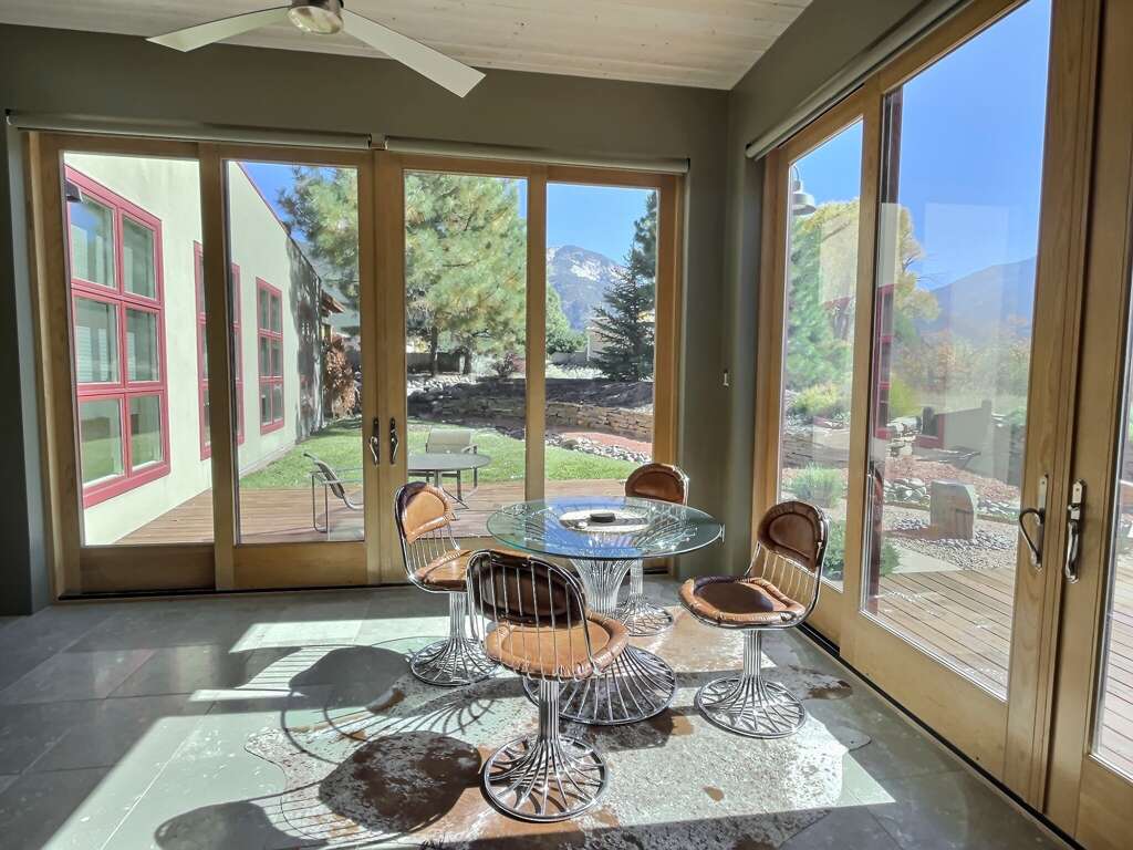 Spacious and meticulously designed home built for comfort, privacy, and total relaxation in Arroyo Seco is sure to surprise and delight visitors. This special Abode Premier home is waiting to welcome you to a private retreat with the finest of everything from linens and homegoods to local and regional art and excellent coffee. Everything was considered in the design of the home and that includes both indoor and outdoor spaces. This property boasts a beautiful lawn, garden and relaxation deck with Stone Forest fountain and outdoor sofa and dining table and propane barbecue grill, and a large private hot tub in the trees just steps outside the king bedroom suite off a private deck. The kitchen is designed for cooking and entertraining at a large central island facing the living areas. The views of El Salto from the sun room are incredible in every season. Gourmet kitchen is well stocked to cook and serve meals for up to 6 people, including cooking essentials. Ample food storage space in functional and beautiful cabinetry and large refrigerator/freezer.Taos County Permit # STR-2025-0004