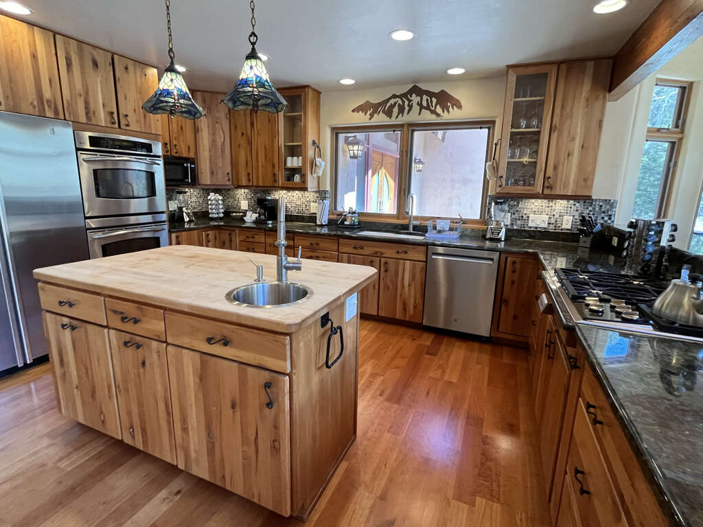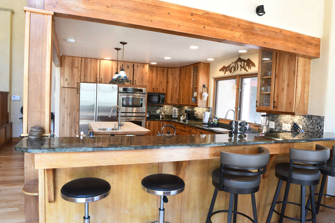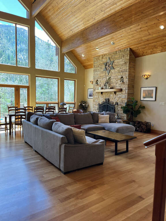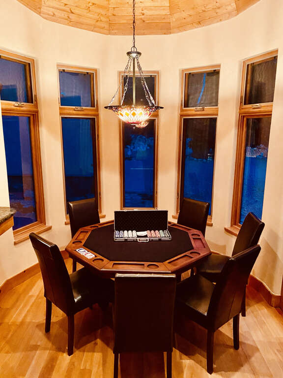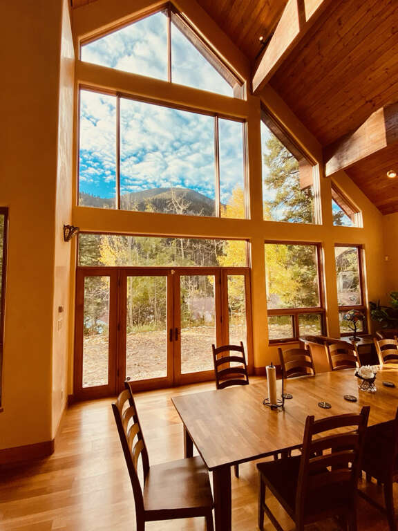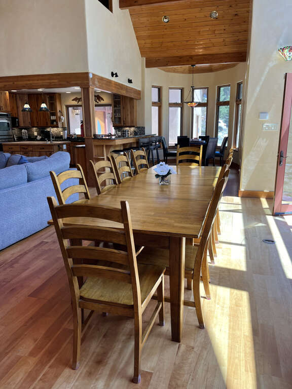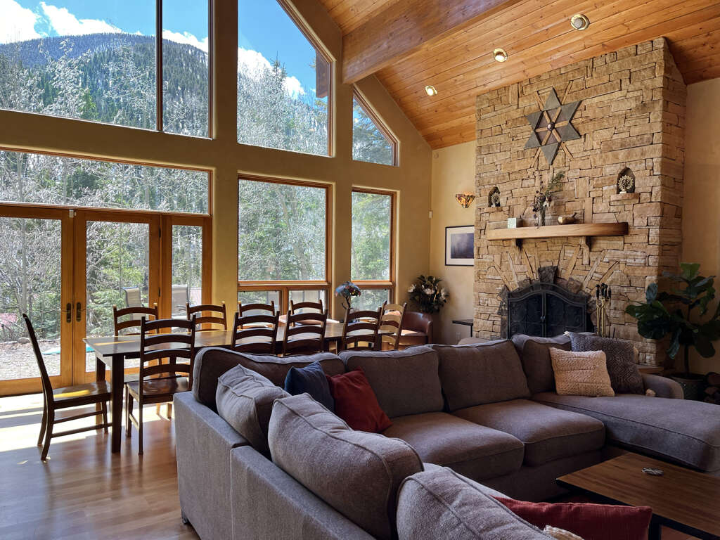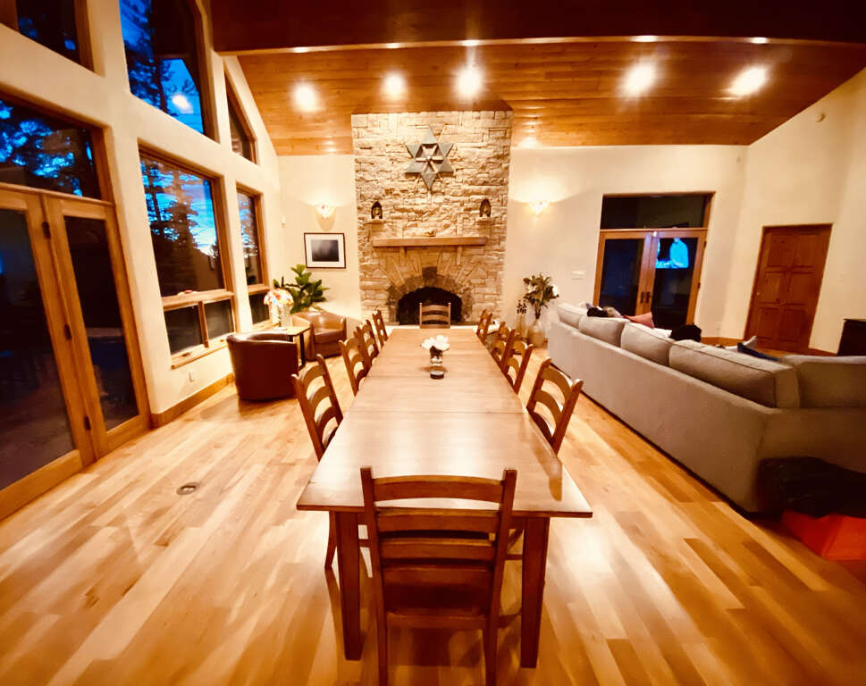 House in Taos with 6 bedrooms, open gathering space, dining for 12, and a private game wing; a practical place to stay for larger groups in town.