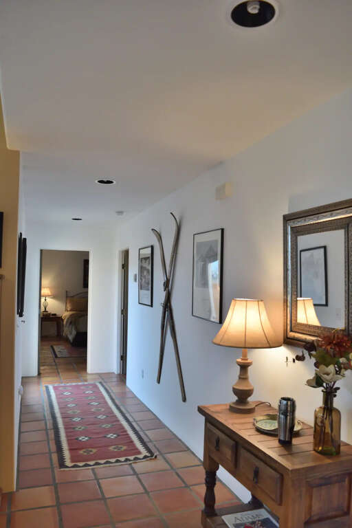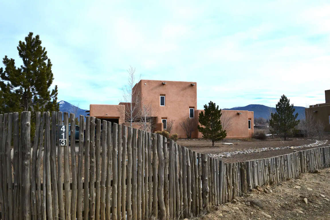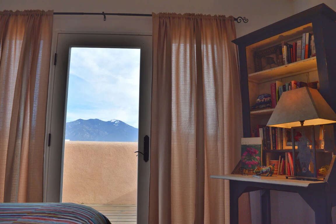 A 1,700 sq ft house in Taos with mountain views, radiant heat, gas log fireplace, and two private courtyards—an easygoing vacation rental for four.