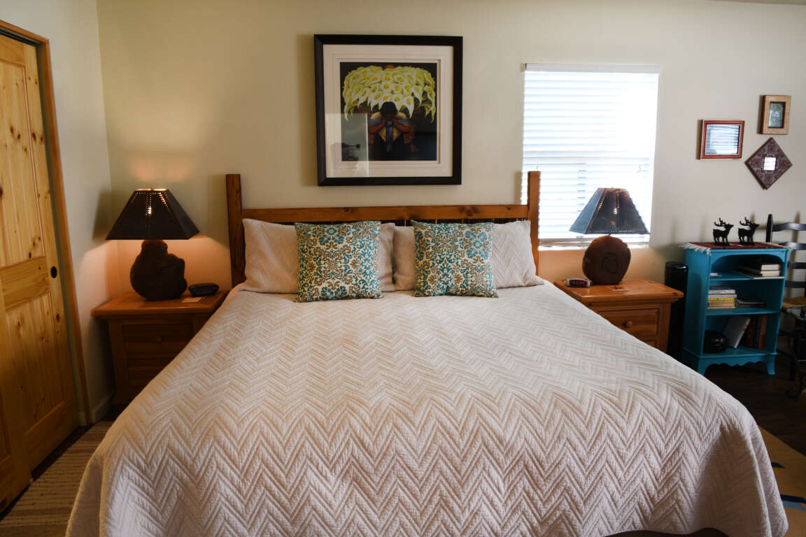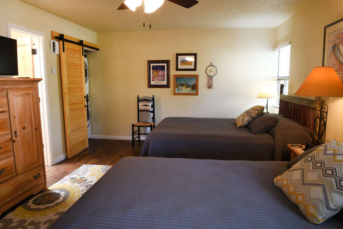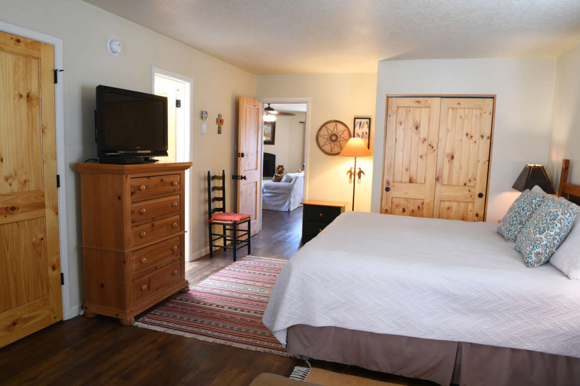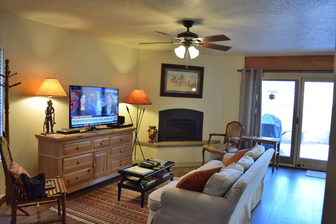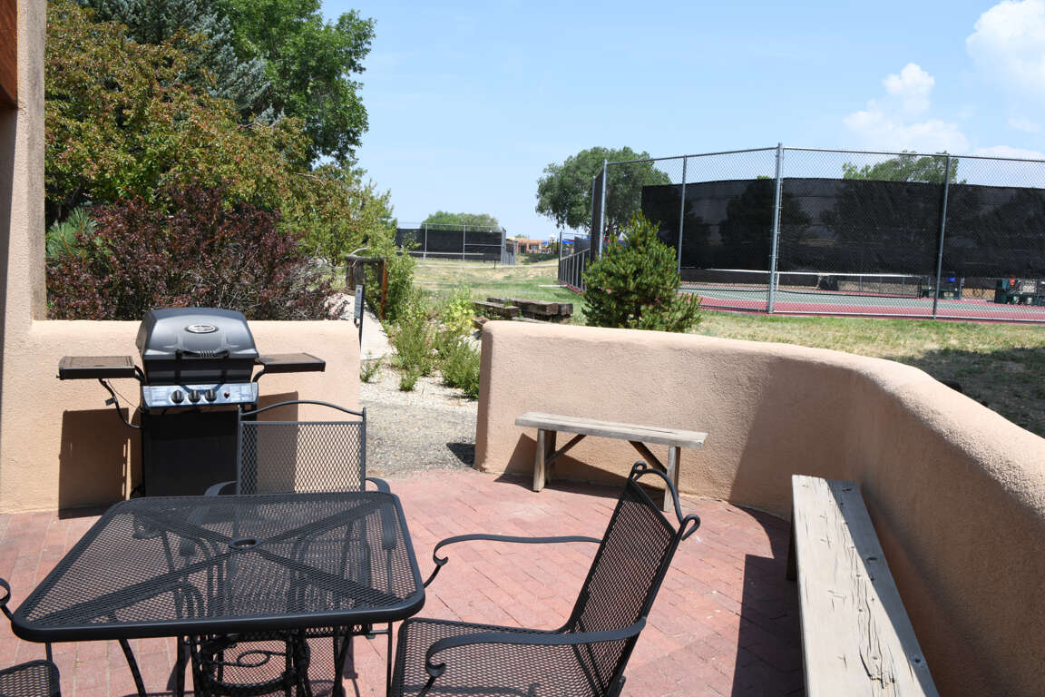 1,200 sq ft condo vacation rental in Taos with 2 bedrooms, 3 baths, and a private patio; access to tennis courts, seasonal pool, and hot tub.