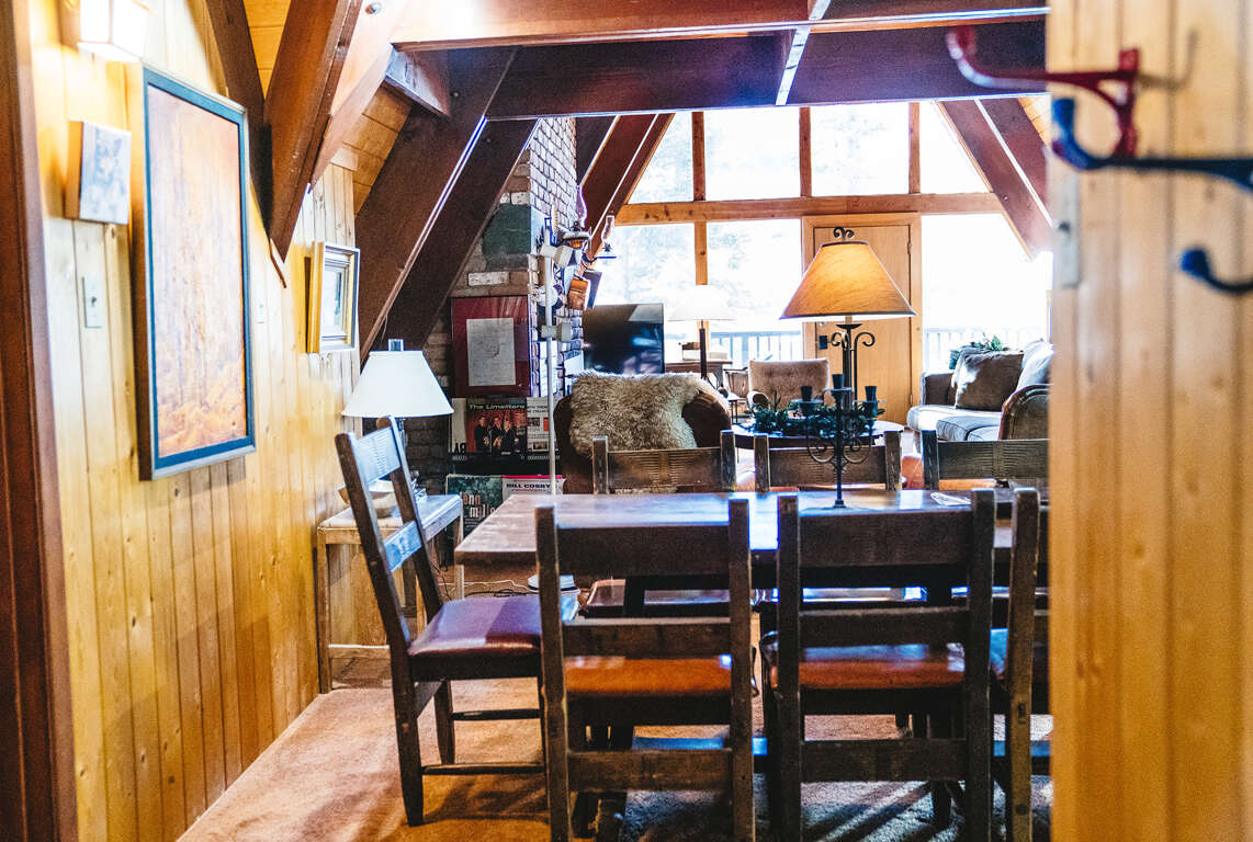 Taos Ski Valley history runs deep in this original 1960s A-Frame cabin, one of the first built in the valley.Cherished by a single family spanning four generations, its deep history is evident in the space with instant, homey comfort and a collection of vintage heirlooms and memorabilia, reflecting the familys open-door spirit.A true skier's retreat: just a 10-minute walk to the chair lift, shops and restaurants.Watch the snow fall over Als run from the two-story windows and deck and always get first tracks.Return home to the coziest aprs-ski, featuring plenty of seating, an extended dining table, and built-in bar. Spend evenings playing games and imagining simpler times, where you might have found a martini hidden in the trees on the mountain. This historic stay is a true vestige of the valley's original charm, complete with fondue sets and dcor items to match its storied past.When taking a break from some of the best alpine skiing in the West, there are plenty of other activities such as hiking, ice skating, snowshoeing and village shops readilyaccessible. In warmer months, enjoy fishing, hiking, berry picking and the refreshing cool-mountain air. The cabin offers two downstairs bedrooms, and 1 full bath, while an upstairs loft has 2 additional bedrooms, 1 bathroom, and small loft space. The cabin is fully appointed for making memories, from a comfortable living and dining space to a stocked kitchen, new stove, standard refrigerator and enough cooking and serving supplies to host your crew.This unpretentious gem is priced as friendly as we can. We hope you will enjoy this vintage treasure as much as the many generations of family, friends and ski valley legends who have passed through these doors.Things to know about the property:There is a lovely brick fireplace, but it is not functional for guests use no indoor fires in the fireplace.The indoor grill is not operable.The property is .4 miles walking distance from the base downhill descent to the base, and a vigorous uphill ascent home.There is parking for 4 cars (tandem parked) 4WD or AWD capability is required in winter to access the cabin. The road to the cabin is steep and can be slick.The property is not ADA accessible and has architectural features from the 1960s. The property is adjacent to a small tributary stream of the Rio Hondo to the east of thecabin.Must be 28 years of age at time of booking. In addition to completing a booking and payment, valid ID must be provided, a rental agreement must be signed and securitydeposit or damage hold must be paid with valid credit card after booking.No parties or eventsNo smokingShoes off inside the home and gear stored on boot trays
