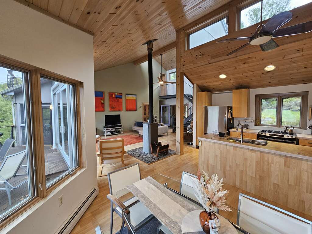 Prepare to be captivated by the breathtaking panoramic views that greet you from every angle of this property. With decks extending from every room, you can savor your morning coffee while watching the sunrise or unwind with a glass of wine as the sun sets over the serene waters below. The gentle rustling of leaves and the soothing lull of the lake provide a natural symphony that invites relaxation.