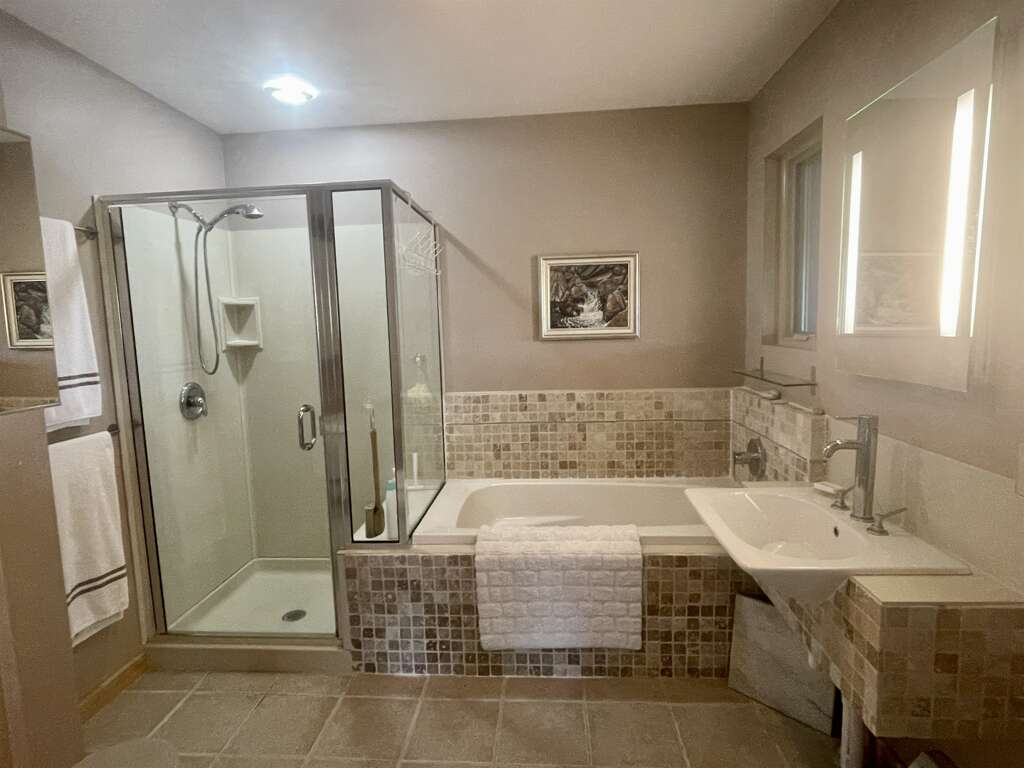 Our 4 well-appointed bedrooms offer comfortable sleeping arrangements for your group. The master suite, with its private deck, invites you to wake up to the shimmering waters of Gull Bay. Three additional bedrooms provide flexibility and privacy for your guests. With 3 bathrooms, including one with a luxurious soaking tub, you'll find convenience and comfort throughout your stay.