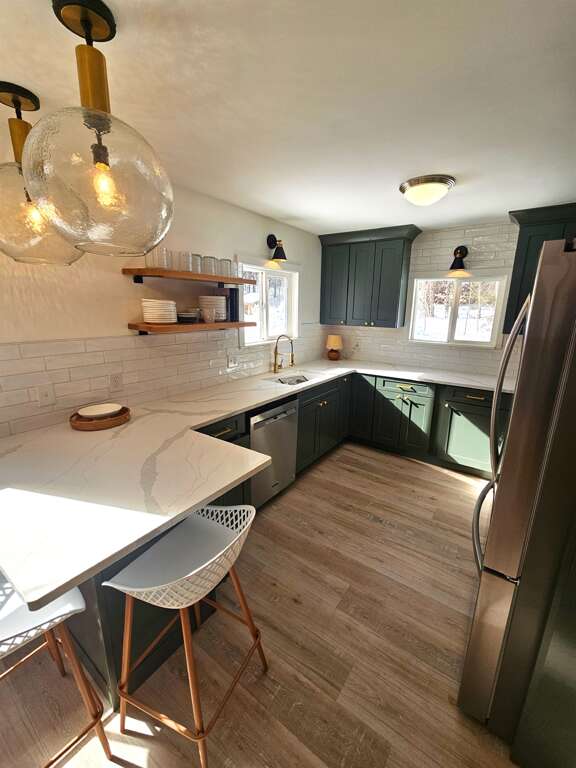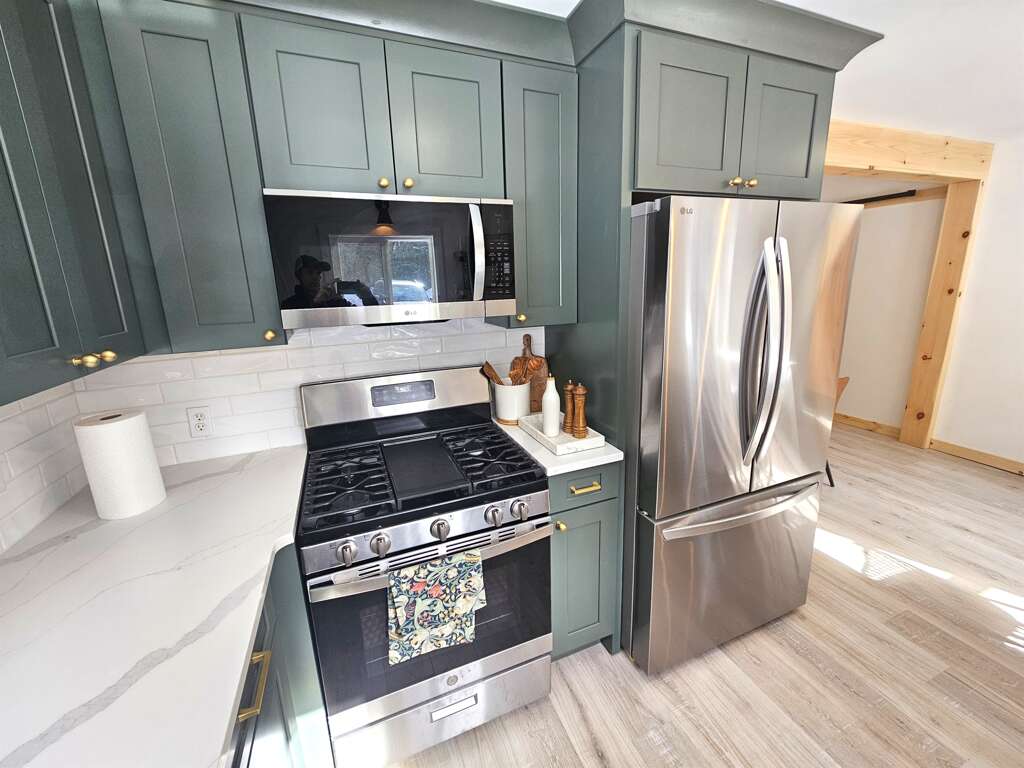 The fully equipped kitchen has everything you need to prepare delicious meals, with brand-new appliances, plenty of counter space, and a spacious dining area for gathering. Whether you're making a hearty breakfast before a day on the trails or cooking up a feast after a day on the lake, you’ll find everything you need right at your fingertips.