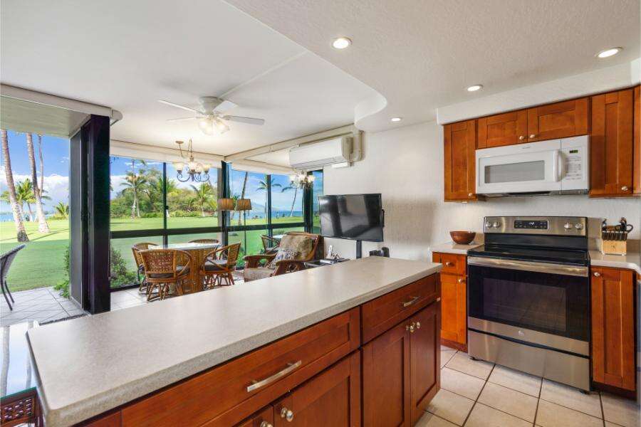 Step inside Kihei Surfside #111, your deluxe oceanfront condo in Kihei, Hawaii, and immerse yourself in the breathtaking views and luxurious amenities awaiting you. Picture waking up to stunning oceanfront views every morning, feeling the gentle sea breeze on your skin as you sip your coffee. This modern condo offers a perfect blend of comfort and style, with sleek furnishings and high-quality facilities to enhance your stay. The spacious living area provides a cozy retreat after a day of exploring, while the fully equipped kitchen allows you the freedom to whip up your favorite meals. From the private lanai, gaze out at the azure waters and golden sunsets, creating memories that will last a lifetime.