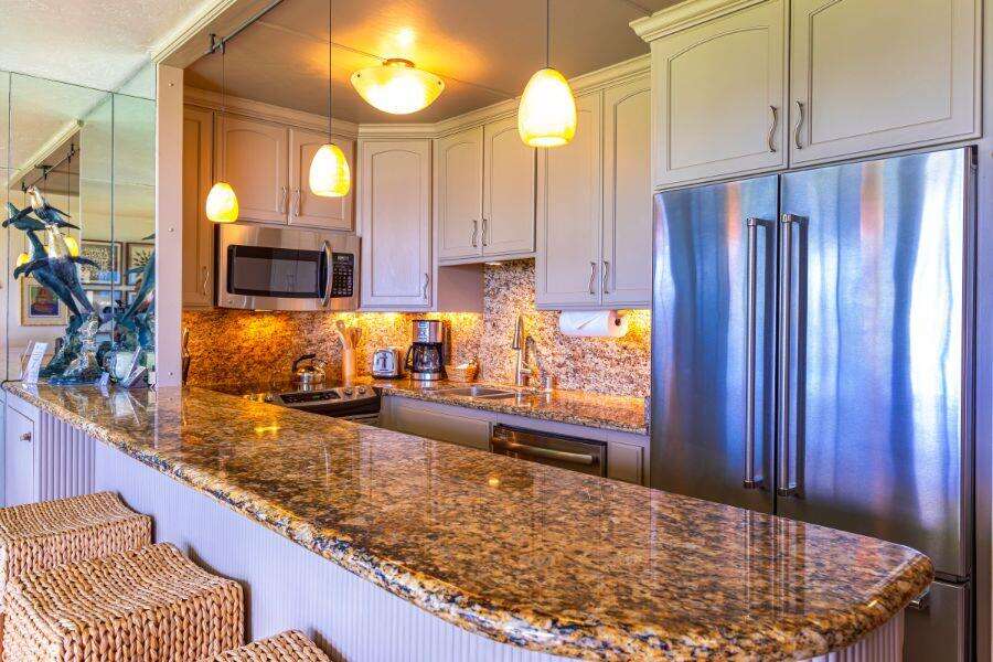 Experience the best vacation at Kihei Surfside #411 - a luxurious condo rental in Kihei, HI. With stunning amenities and nearby activities like beach, biking, boating, fishing, and golfing, it's perfect for an unforgettable getaway.