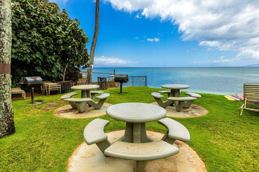 Immerse yourself in the allure of Hale Mahina #B405, a luxurious 2-bedroom condo in Honokowai, Hawaii. This beachfront haven accommodates up to six guests and offers breathtaking ocean views and direct beach access. Enjoy a fully equipped kitchen, elegantly furnished living spaces, and a private lanai for soaking in stunning sunsets. Take advantage of the oceanfront pool, barbecue areas, and serene retreat atmosphere. Contact our responsive property management team for exclusive booking details and personalized assistance. Discover the epitome of elegance and relaxation at this sophisticated condo—it's a dreamy escape awaiting your arrival.