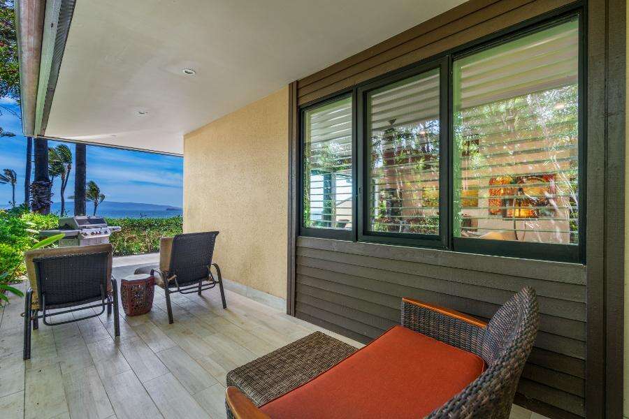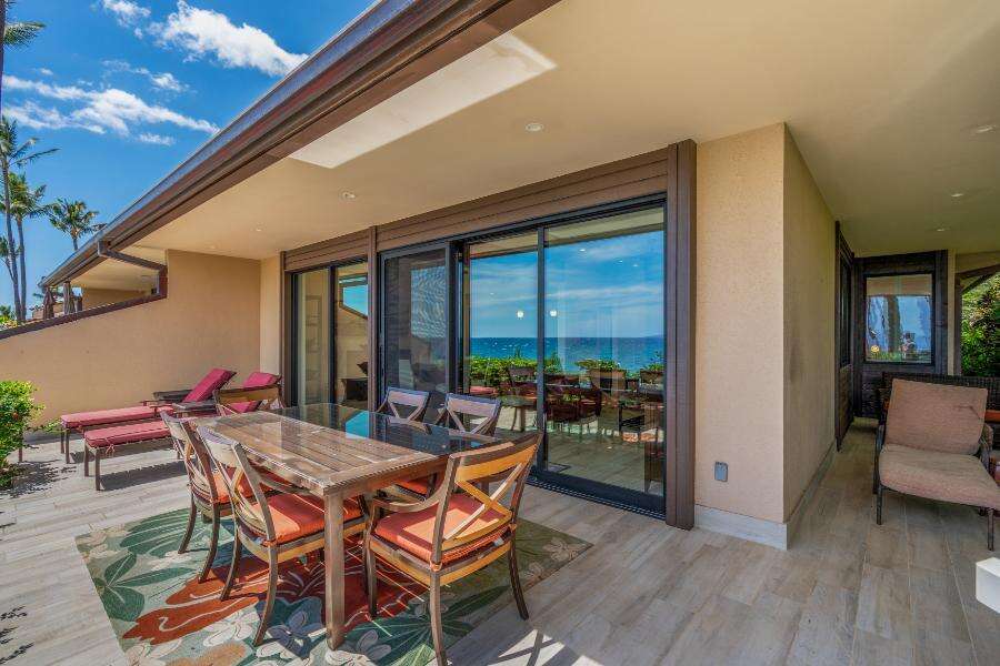 *Three lanai areas: front entry lanai, shaded side lanai, and ocean-facing lanai with table, and chaise lounges