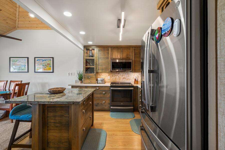 â˘Townhouse layout with one loft bedroom and ensuite bath, and one bedroom and bathroom on the main living and dining level.