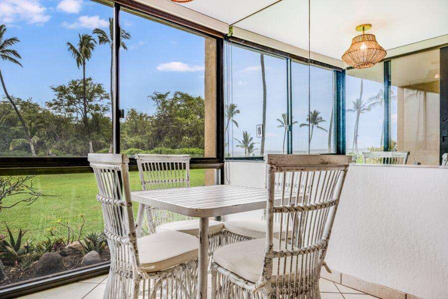 Enjoy comfort, convenience, and coastal beauty at Kihei Surfside #113—an ocean view, ground-floor condo that underwent a complete renovation in May 2022. Located steps from the water’s edge and adjacent to Keawakapu Beach, this one-bedroom, one-and-a-half-bathroom retreat blends modern upgrades with Maui’s timeless island charm. With a spacious layout and split duct A/C in both the bedroom and living room, this unit comfortably sleeps up to four guests.