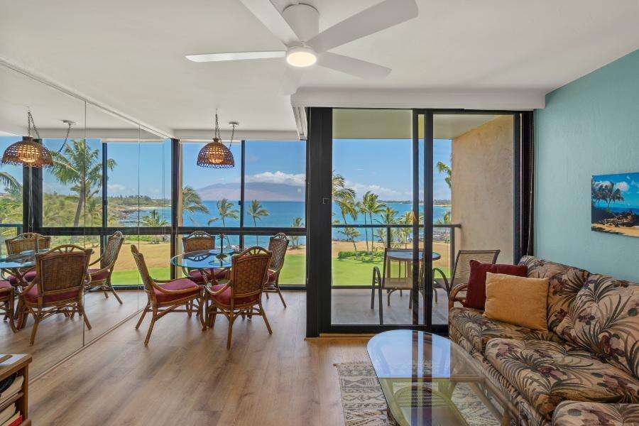 Welcome to Kihei Surfside #508, a beautifully situated 1-bedroom, 1-bathroom oceanfront condo offering unobstructed views of Maui’s stunning coastline. Perfect for two guests, this fifth-floor retreat now features split-duct air conditioning in both the bedroom and living room, adding cool comfort to its already relaxed island feel. Whether you’re sipping morning coffee on the lanai or catching sunsets over the Pacific, this is Maui living at its most peaceful.