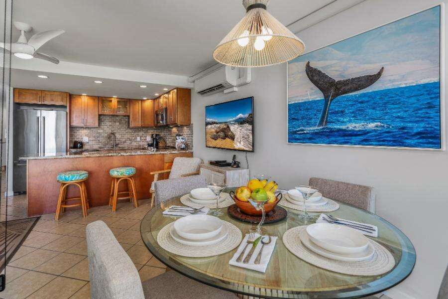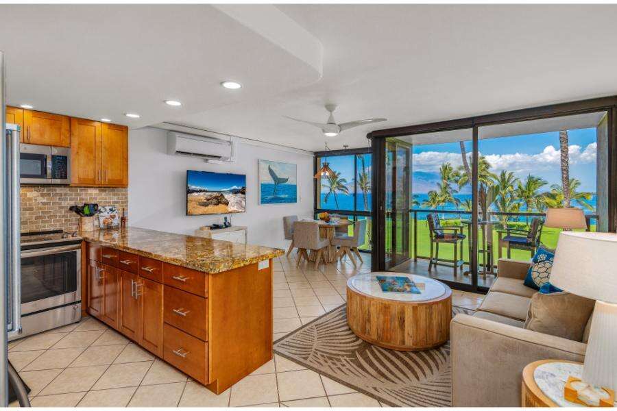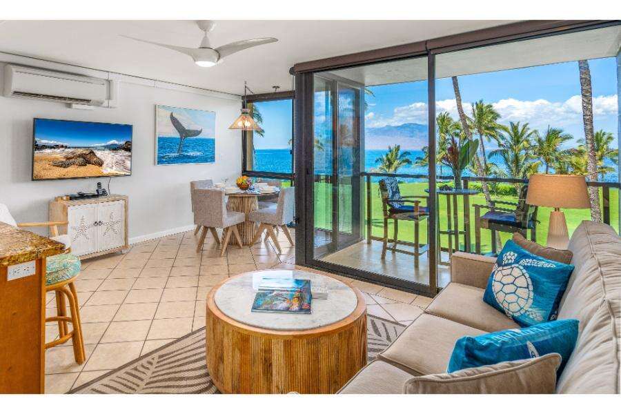 Step into the serene beauty of Maui with a stay at Kihei Surfside #310. This 1-bedroom, 1.5-bathroom condo offers stunning oceanfront views from the third floor and a comfortable island-inspired interior perfect for couples or small families. With updated split-duct air conditioning and a spacious layout, it’s a welcoming escape along South Kihei’s scenic shoreline.