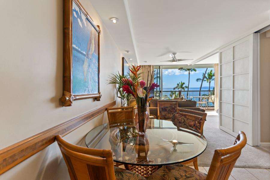 Welcome to Mana Kai Maui Resort #405C, a well-appointed 2-bedroom, 2-bathroom condo offering direct oceanfront views, cool island breezes, and all the modern comforts of home. Located on the 4th floor of one of South Maui’s most desirable beachfront properties, this unit is perfect for couples, friends, or families seeking a relaxing, scenic getaway just steps from the golden sands of Keawakapu Beach.