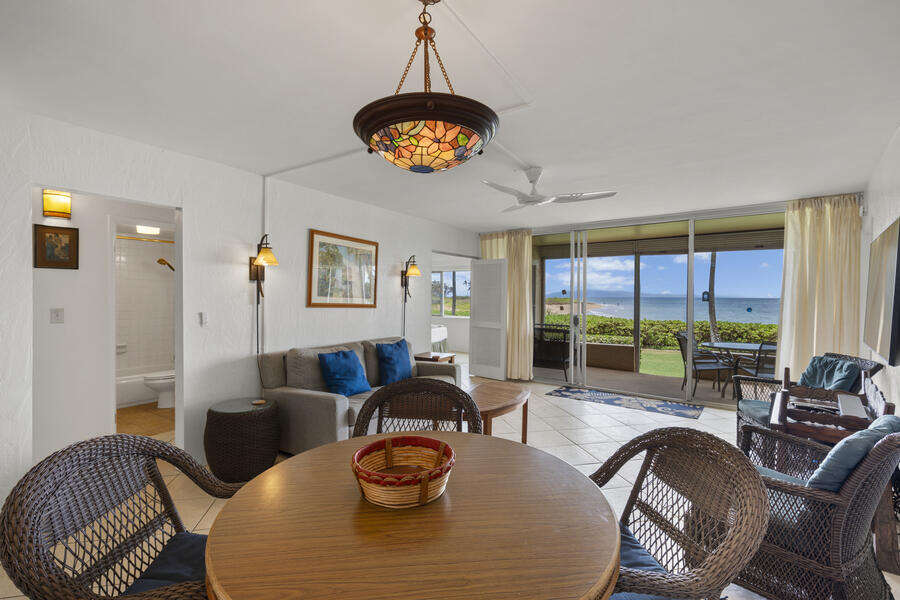 Welcome to Menehune Shores #118, a rare three-bedroom, two-bathroom oceanfront condo with direct ground-floor access to the beautifully manicured lawn and beach. With ample space for families or groups, this inviting retreat combines comfort, convenience, and a stunning location on Mauiâs sunny South Shore.