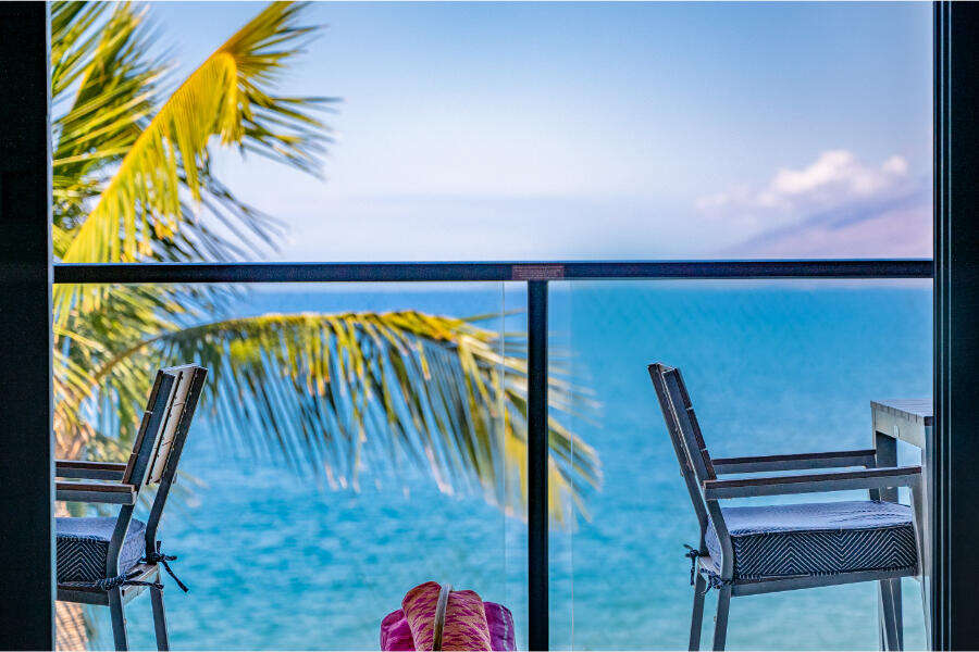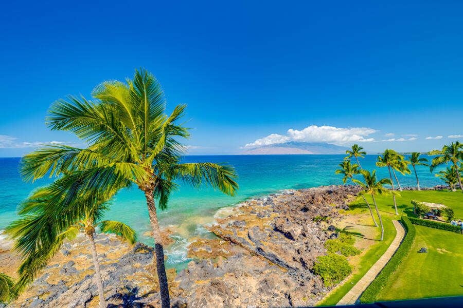 • Private lanai with sweeping 180° ocean views