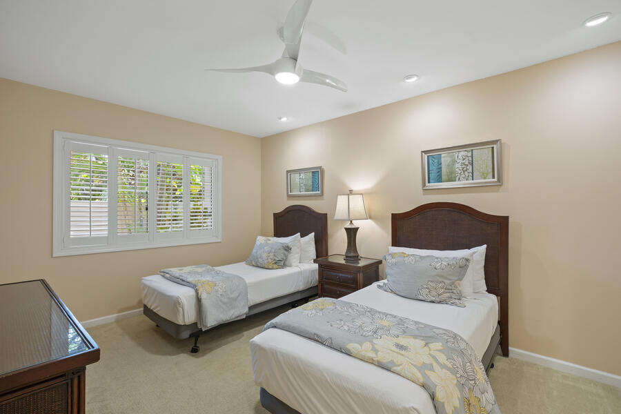 â˘Guest Bedroom: Two twin beds with luxury linens