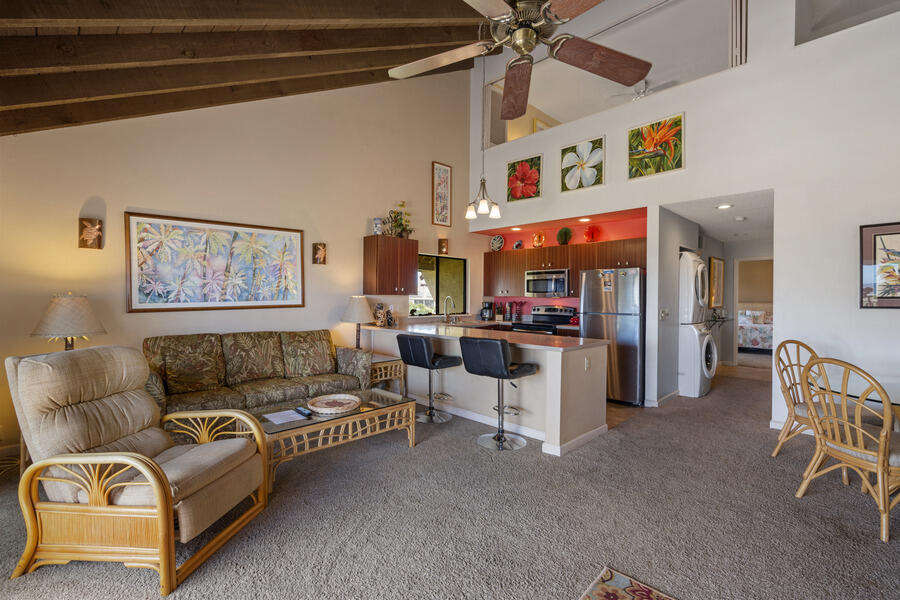 Experience the beauty of Maui from Maui Kamaole #H-208, a spacious two-bedroom, two-bathroom condo offering partial ocean views and a comfortable layout. Perfect for families or friends traveling together, this unit combines the conveniences of home with the amenities of a resort-style community. Enjoy your morning coffee on the private lanai, relax by the pool, or take a short stroll to the sandy shores of Kamaole Beach Park III.