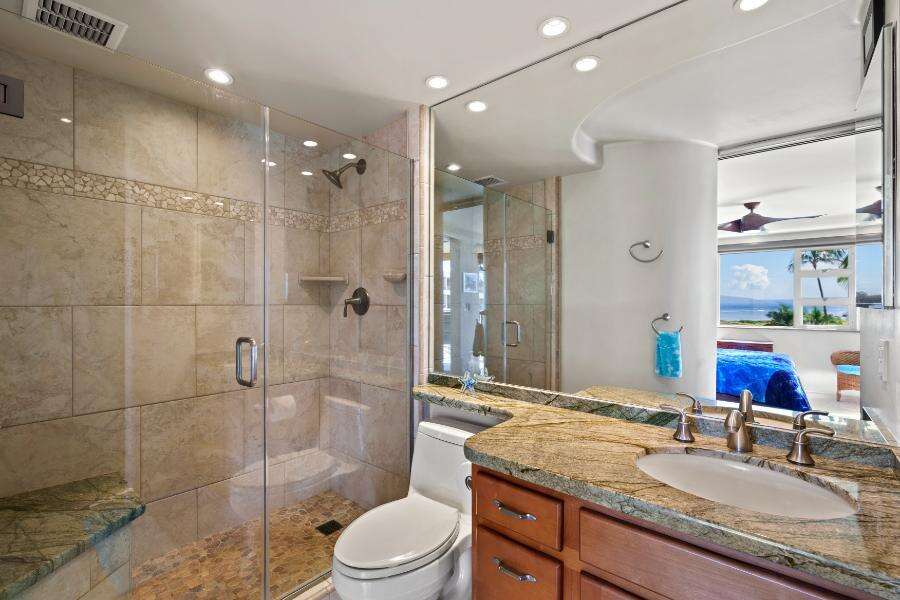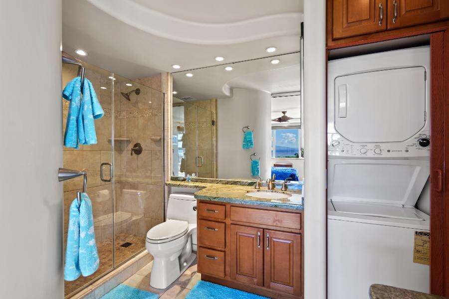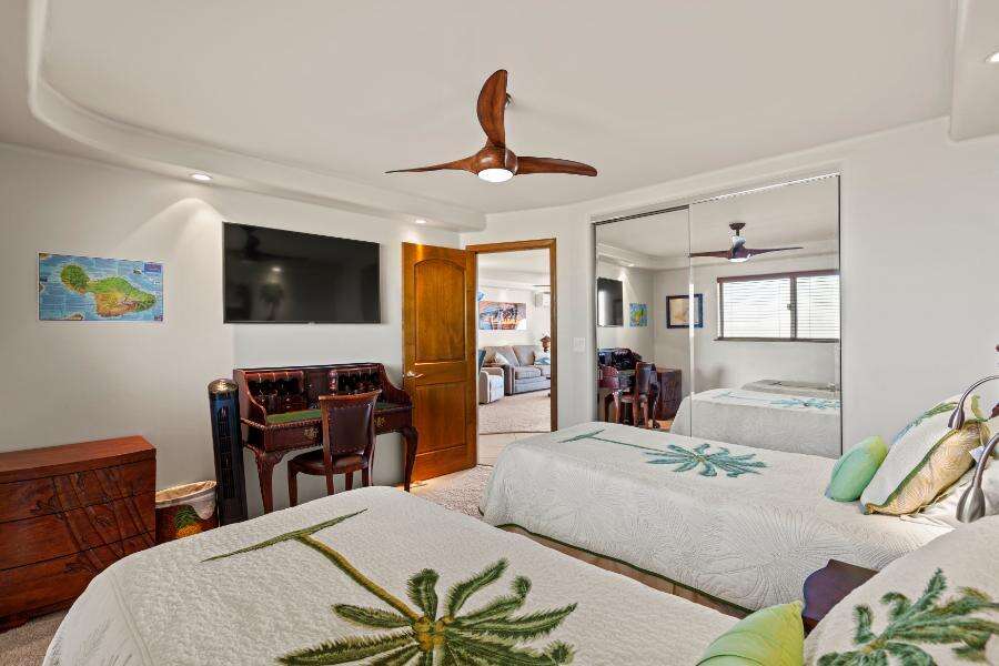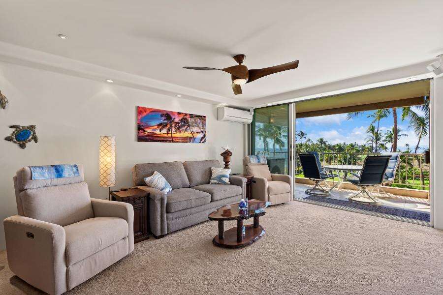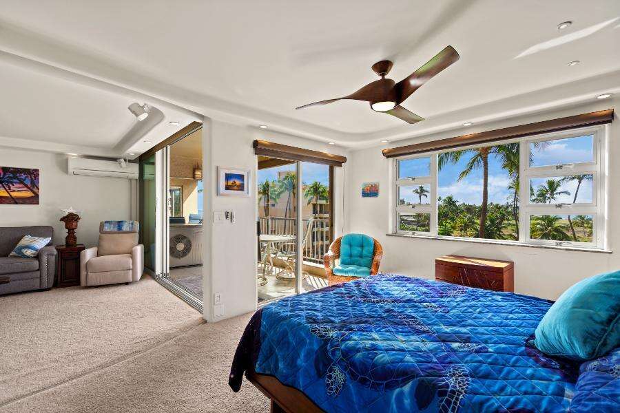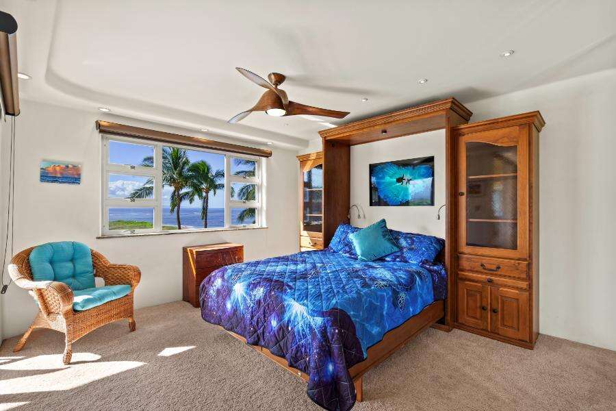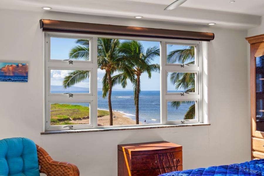 Step out onto your own private lanai to take in the unforgettable sightings of humpback whales during whale season. Relax in the oceanfront master bedroom with a king bed, direct lanai access and private bath. Fall asleep with the gentle sea breeze and wake up to the sound of surf outside your window.