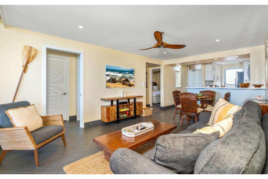 •Bright and open living space with island-inspired décor