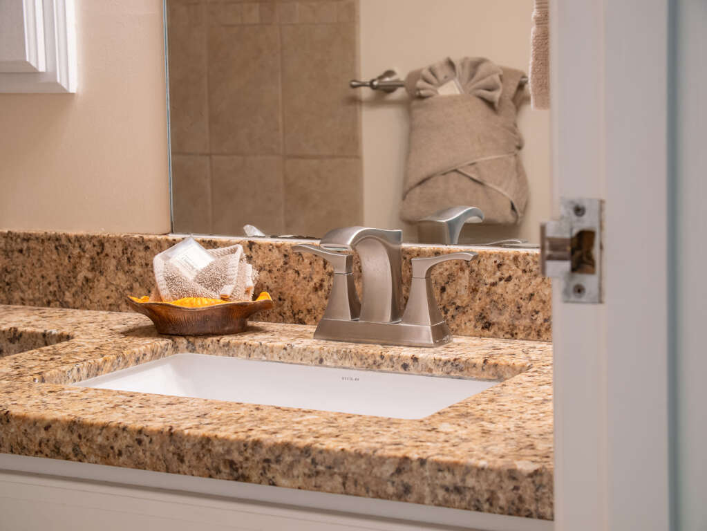 This spacious first-floor condo features a king bedroom, a convertible queen sofa bed, and a private walkout lanai, accommodating up to four guests. Modern amenities include AC in the living room and bedroom, a flat-screen TV, high-speed WiFi, and a printer. The fully stocked kitchen and provided linens ensure a seamless stay.