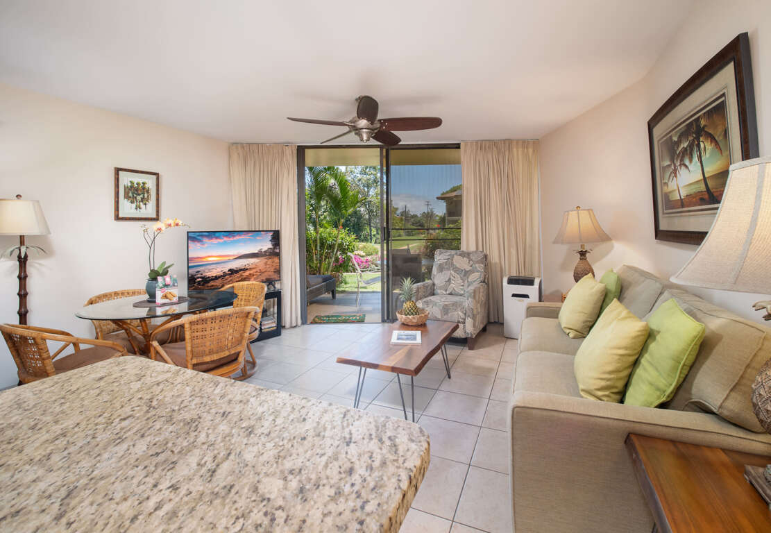 Experience the quintessential Kihei vacation with the Garden View Suite, an opulent place to stay, designed for comfort, leisure, and beauty.