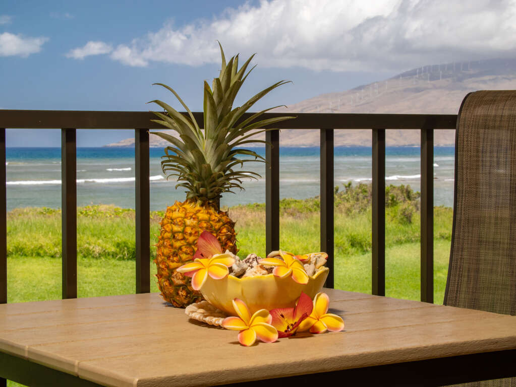 Experience the soothing rhythm of ocean waves in our oceanfront studio offering a peaceful retreat for your vacation in Kihei, HI.