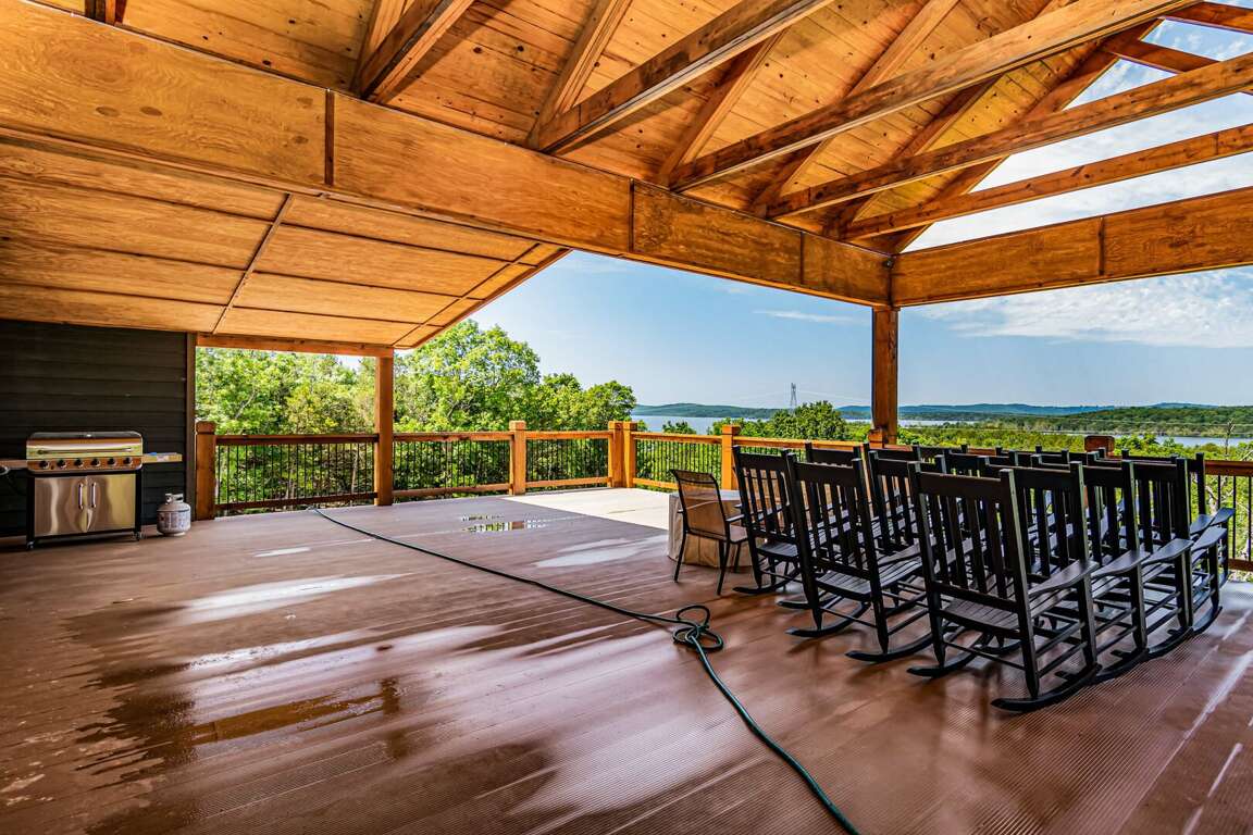 Staycation is located in Chateau Cove. It is an Unbelievable Vacation Rental! You've been searching for it! ** FREE ARCADE GAMES!!! LAKE VIEWS!!! Staycation is the place to be for your group! Staycation Lodge at Chateau cove has 12 bedrooms, lake views and a private indoor swimming pool. There is also a game room, theater, hot tub, private basketball court, and a large meeting room. A huge covered deck can host many guests. This property is unique in the Branson area. You won't want to leave! Listening to the thousands of guests we have served since 2005 (more than 15 years!) We have created a unique, desirable home in Branson. The best location, over 8,100 square feet of living space; 2,000 square foot covered deck with lake views! Ideal for celebrations and events. It is only 6 minutes from the HWY76 strip, just minutes to Moonshine beach at Lake Table Rock, the marina, and 10 minutes to Silver Dollar City. You and your guests won't want to leave Staycation because there is so much to do. This spacious, well-equipped vacation rental is a popular choice as it is the only one with these amenities. You can rest assured that we are a local property management company with a full service maintenance team that can be at your property in minutes. Staycation Lodge can accommodate up to 50 guests in 12 bedrooms and 14.5 bathrooms. The lodge measures 8,100 square feet. You can enjoy some peace and quiet while sipping your morning coffee, taking in the stunning Ozark beauty, or while you are enjoying a glass of wine while you get lost in the sunset over Lake Table Rock. Your group can also swim in the private pool, watch a movie in our theater room, or play basketball on the half court down. Staycation Lodge offers many opportunities to capture amazing photos that you will cherish and make memories. Each bedroom has its own bathroom and boasts the highest quality sheets and linens. There are three levels of amazing vacation space, and the largest deck of any Branson vacation rental home! This large covered deck back deck offers stunning lake views and a propane fireplace pit. This space is big enough to host wedding ceremonies, celebrations, gatherings, and other events. It also offers enough privacy to enjoy the stunning views. Event fees may apply. The lower deck features a large hot tub, direct access to the pool and a basketball court. Are you looking for a Branson home for your furry friend? Although this home is not pet-friendly, there are many other properties that will welcome your dog. Get in touch with us to find the perfect home! ** A signed electronic rental agreement is required in order to rent the house Book at least 30 days before your appointment and pay by Electronic Check to save the credit card fee. Photo ID required In House Amenities For your entire group, you can have dining seating! Theater Room with large TV and lots of seating Private indoor pool for your group. Locking doors that you can control. 12x20/ 8,000 gallons Indoor Private Basketball Court WOW – No other home in the area has this feature! Private Hot Tub TV's in every bedroom Huge fully equipped kitchen 2 Dishwashers 2 Full-size refrigerators equipped with freezer/icemakers 1 small beverage refrigerator in the upstairs gaming room 2 Double Ovens 2 Microwaves Washer and dryers Coffee Maker - Keurig and Drip Toaster, Blender, Dishes/Utensils, Coffee Grinder, Crockpot, etc. There is no cost. Pool table Private huge deck (largest in area) with over 2,000 square feet! There are many larger cookware options: one large stockpot, two smaller 6-quart pots and two 8-quart crockpots. Shared Property Amenities Community center with an indoor pool and a children's splash pad, as well as a seasonal outdoor pool and kids playground and a trail to the lake! State Park Marina is located approximately 2 miles away. It offers boat rentals, the Spirit of America catamaran, and a dock for loading or unloading boats. Moonshine Beach offers boat launch and a courtesy dock. The Lodges at Chateau Cove offer boat trailer parking. There are so many things to do! Bedding Configuration: Main Walk-in Level Bedroom 1 King and a Futon Bedroom 2 King and a Futon Bedroom 3 King and a Futon Bedroom 4 King Downstairs Bedroom 1 King over Queen Bunk Beds Bedroom 2 King and a Futon Bedroom 3 King and a Futon Bedroom 4 King over Queen Bunk Beds Upstairs (3rd level) Bedroom 1 King and a Futon Bedroom 2 King and a Futon Bedroom 3 King and a Futon Bedroom 4 King and Futon Standard Occupancy 50 / Maximum occupancy 50 House Rules and PoliciesNo Smoking of Any Kind No Pets No Parties Strictly enforced check-in and checkout times No RVs, Boats, Campers, or Tents Allowed Minimum Age to Rent is 25 Minimum Nights Requirement - This varies by season and holiday For short-stay inquiries, please call Some dates require specific arrival/departure dates due to holidays. Additional policies and rules are set out in the Rental Agreement, which is provided upon confirmation of booking. Be courteous and respectful of your neighbors. *Additional rules & policies will be outlined in the rental agreement upon booking confirmation For great local tips and activities, check out the Rent Branson team on our social media platforms! Keep an eye out to the Rent Branson dancing bear acebook: https://www.facebook.com/RentBranson nstagram: https://www.instagram.com/rentbranson/ TikTok: https://tiktok.com/@rentbranson Rent Branson is a great place to stay where your family can "Make Memories, Start Traditions!"