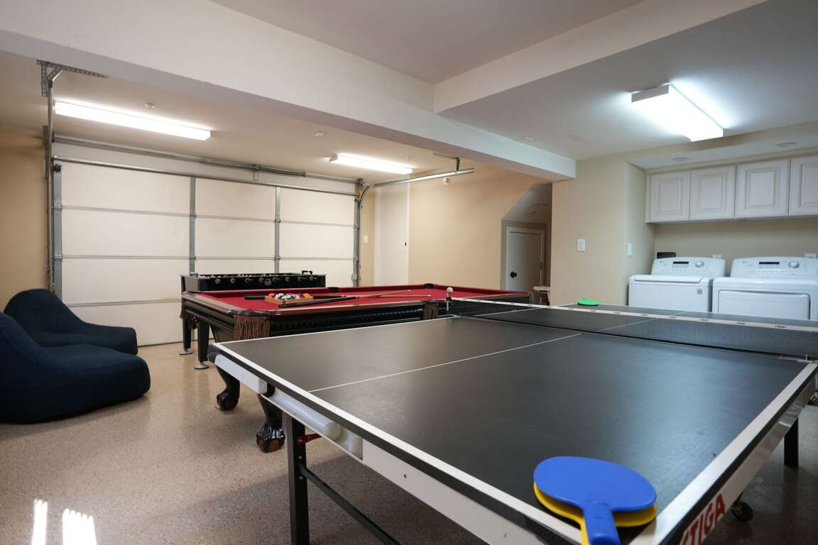 The game room is located just off the living space in the garage. Air hockey, ping pong, and pool tables are available. For your infants and toddlers, you can choose from a range of strollers, highchairs, pack n' plays, and boosters. You can use a full-size washer and dryer. All bedrooms have carpeting and the common areas are laminate hardwood flooring.