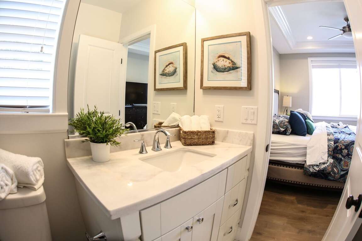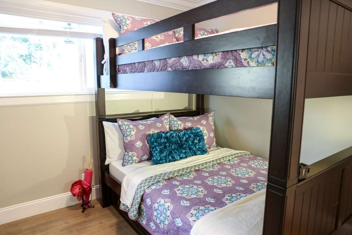 Two Cal-King master bedroom with private bathrooms. Two more Cal King Beds share a Jack n' Jill Bathroom. The final two bedrooms feature Full over Full Bunk Beds. The children's room shares a bathroom with a bathtub/shower in the hallway.
