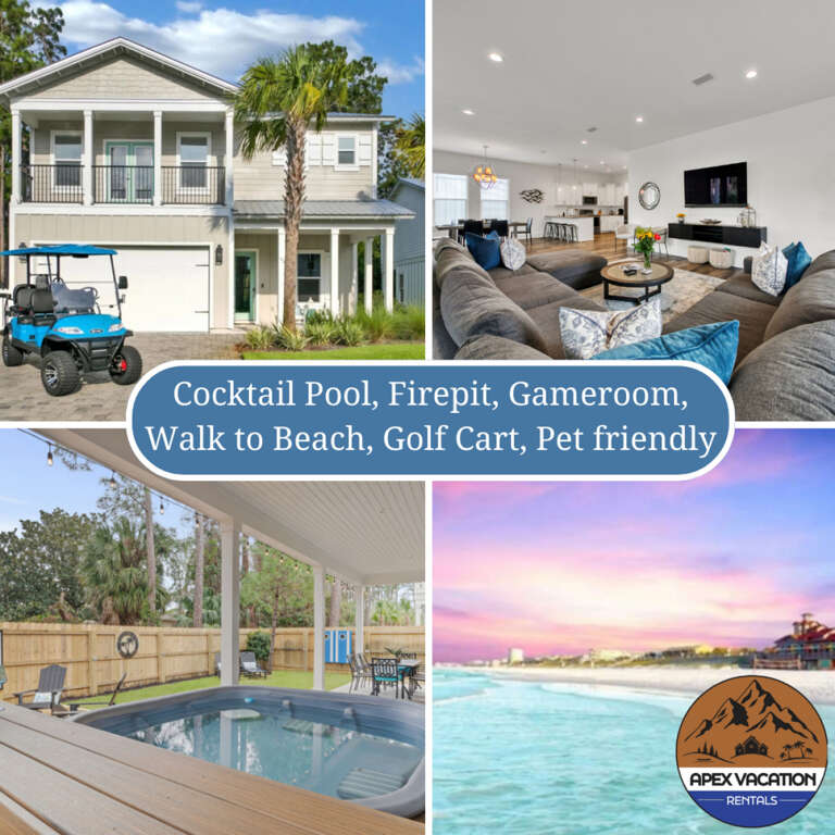 Beach-Pool-Golf Cart-Private Gym: 4-Bedroom Oasis with Private Hot Tub in Miramar Beach