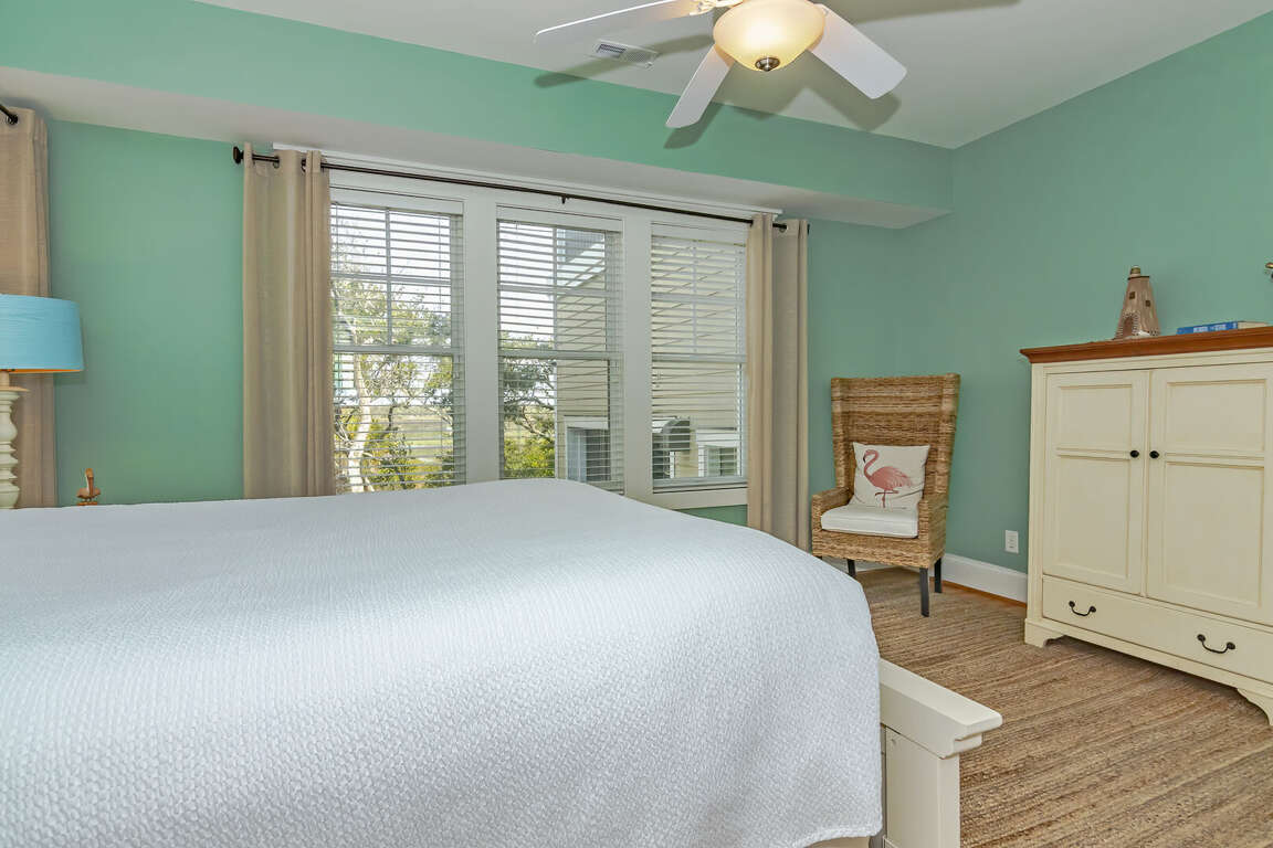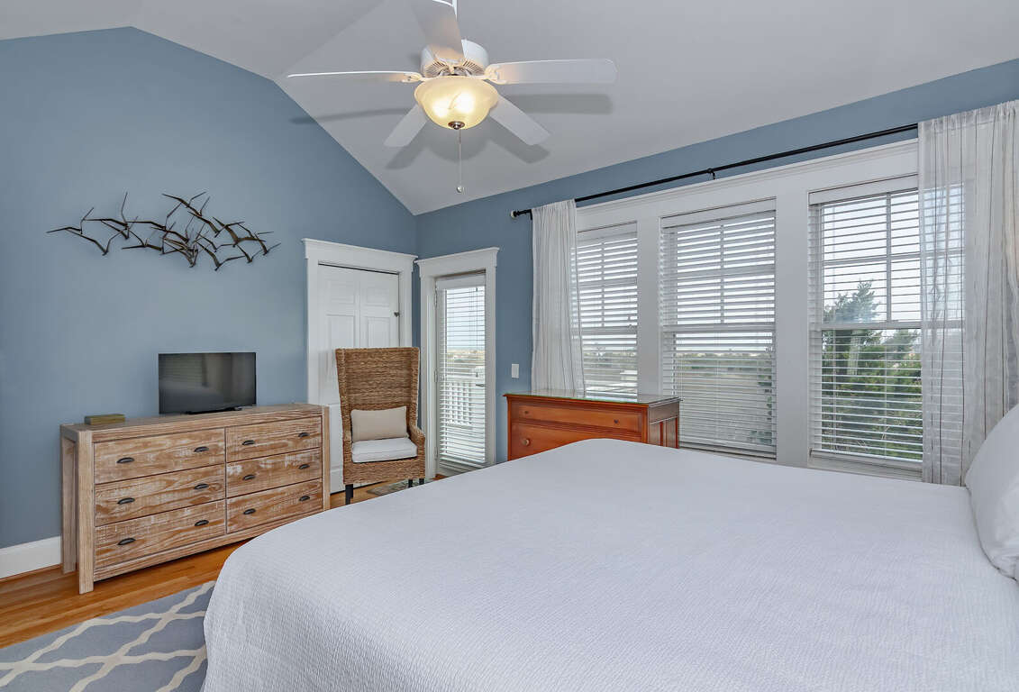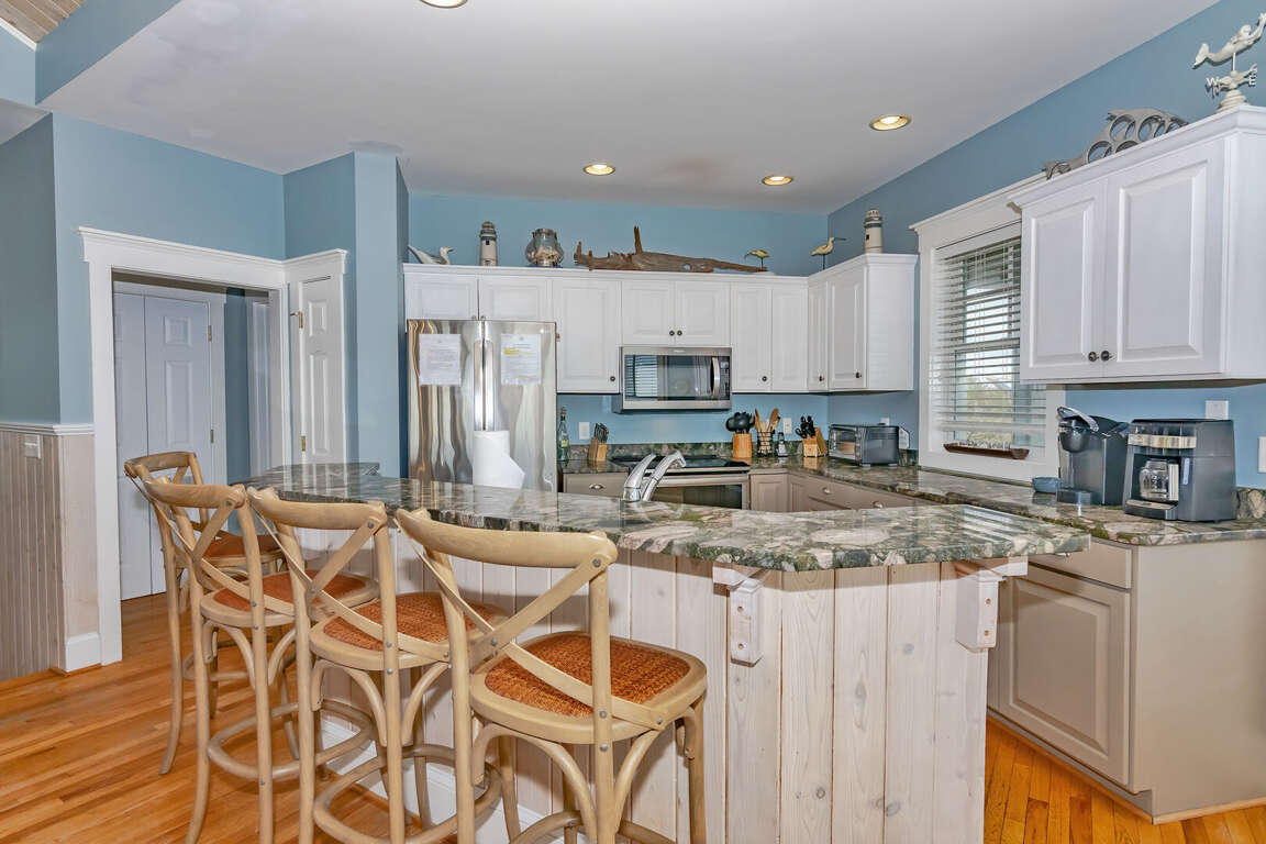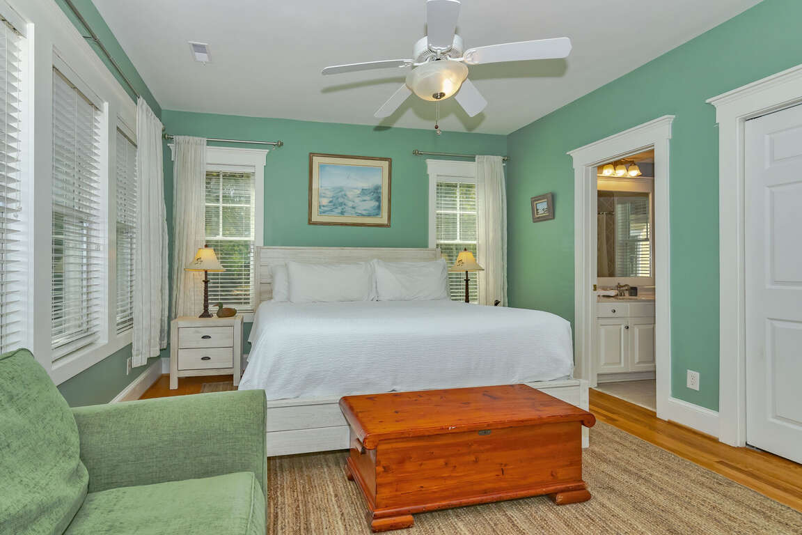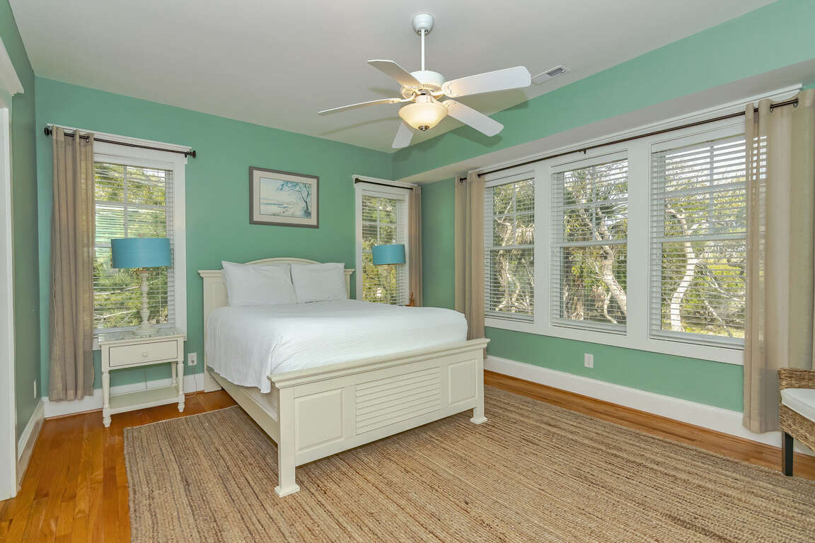 Sea Urchins is uniquely located on a narrow strip between Bald Head Creek and Cape Creek. It borders Bald Head Island’s 10,000+ acre Bird and Wildlife Sanctuary, Middle Island, which is one of the most peaceful and beautiful areas on the island. You can enjoy spectacular panoramic views from both the front and back of your house, which allows you to see the ocean, marsh, sunrise, and sunset. Paradise surrounds your home! This sprawling, 3,000+ square foot retreat is perfect for entertaining. This two-story retreat, measuring 3,000+ sq. The house has two decks that run the length of it. A screened porch with a dining table and an upper deck allow you to take in the stunning views. The upper level has an open floor plan that includes the main living area with comfortable seating and large-screen TV. The well-equipped kitchen features stainless appliances, granite countertops, and a breakfast bar. The large dining table is located between the living and kitchen areas. It offers plenty of seating. One of the master suites is located on the upper floor. It has a king-sized bed, a full bathroom, and access to the deck that overlooks stunning views of the sea and marsh. The bunk room can sleep four people and is ideal for children. It also boasts a private, full-size bathroom. Lower floor features a recreation area, which was recently updated and has a pool table and a wet bar. There is also a second living room with oversized TV. High speed internet access and smart TVs make it possible to watch your favorite Netflix and Prime videos. This floor also includes a queen bedroom with an en suite and a second master bedroom with private deck. There are two laundry rooms. The house is situated on a 1-acre lot, which provides privacy and peace. It is only 0.2 miles walk or a quick golf cart ride to Middle Island's private beach access onto the beautiful East Beach. For your comfort and enjoyment, there are beach chairs, beach towels and two 4-seater golf cars. Bald Head Island Club memberships, including golf, and Shoals Club memberships, are available for purchase separately. Sea Urchins is your new BHI tradition! 4 Bedrooms