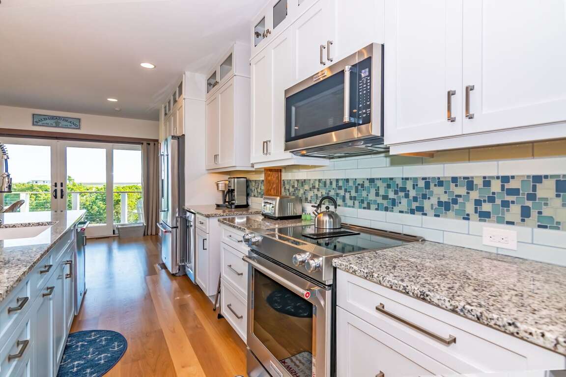 Location is everything at 411 South! This stunning home offers views of the golf course, lagoon and ocean! What else could you want? What about a rental with 5 bedrooms, 4 bathrooms and a completely renovated top to bottom? The kitchen is well-designed for the foodies of your family. It is spacious and equipped with all the bells, whistles and gadgets you need for family dinners or entertainment. We have a spacious open floor plan downstairs with 4 bedrooms, 3 bathrooms, 2 screen porches, and a front porch that faces the Atlantic Ocean. Upstairs, you'll find a private master suite with a king bed and a balcony overlooking the ocean. From your upstairs suite, you can also enjoy views of the golf courses and lagoon.