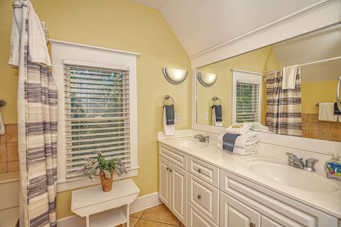 Perfect house for two couples! Downstairs and upstairs master bedrooms, large front porch, screened porch and patio area, all contained by a pretty picket fence! Kitchen was functional and well equipped. Dining area seated 6 people. We had our dogs with us, and found little details saying that the owners were also dog lovers. Thank you for sharing this wonderful home. We hope to return during the winter! I would rate Astrid's Digs as a excellent place!