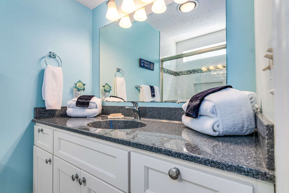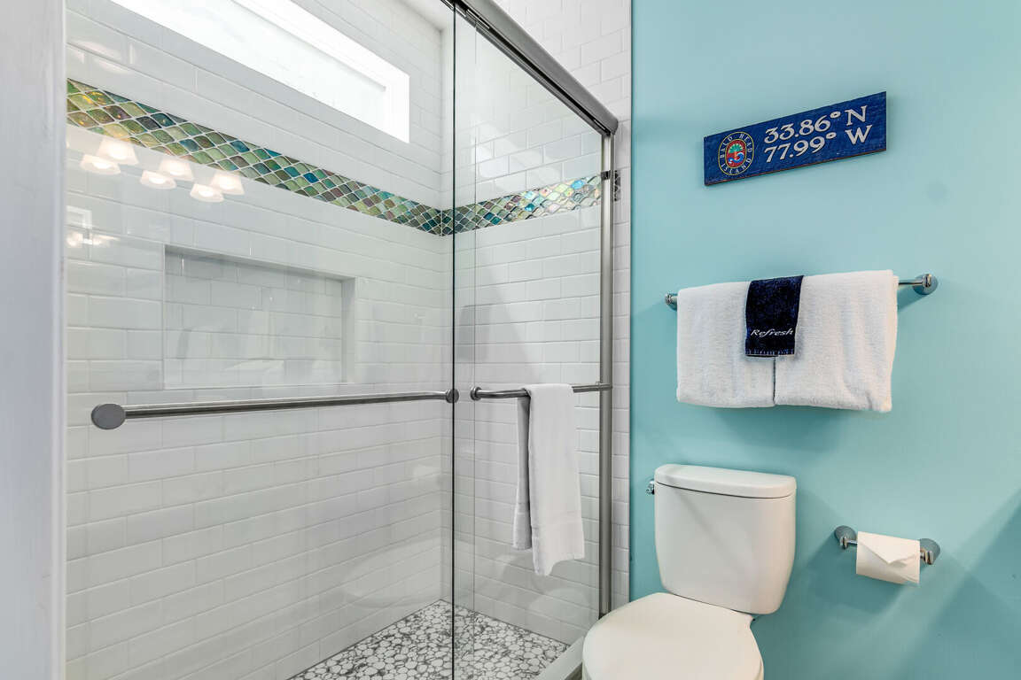 Located in the serene Bald Head Island, NC, our luxurious vacation home features three bedrooms and two full bathrooms, providing a cozy retreat for up to six guests. The bedroom decor exudes a coastal charm, with soothing colors and tasteful furnishings that create a relaxing atmosphere for a restful night's sleep. The bathroom upgrades showcase modern fixtures and elegant finishes, ensuring a luxurious experience for all guests. Whether you are unwinding after a day at the beach or getting ready for a night out, the well-appointed bedrooms and upgraded bathrooms will make you feel pampered and rejuvenated. Embrace the freedom to indulge in comfort and style during your stay at our exquisite vacation home.