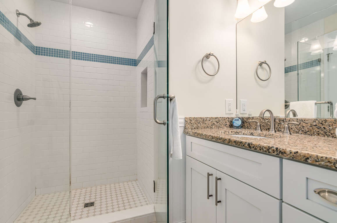 Great location and rooms clean and neat. Kitchen is very well stocked. The bathrooms are up to date and the water pressure is wonderful. Loved the porches too. Golf cart was new and the garage was full or all the things you would need for the beach. Hope to stay again soon!