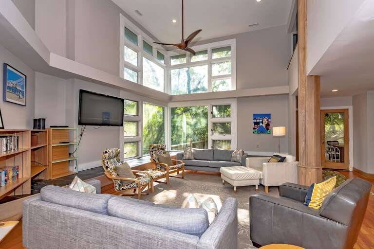 Located within the serene Maritime Forest off North Bald Head Wynd, the Bay Breeze house offers a tranquil setting for a peaceful retreat on Bald Head Island in North Carolina. Surrounded by the lush greenery of the Maritime Forest and cradled among beautiful Live Oaks, this vacation home provides a perfect escape from the hustle and bustle of everyday life. The location guarantees privacy and a connection to nature, making it an ideal spot for relaxation and rejuvenation. Additionally, being part of the Bald Head Island Services network means guests can enjoy convenient access to various amenities and services, enhancing their overall vacation experience. Bay Breeze House truly embodies the essence of island living, providing a unique and unforgettable stay for those seeking a slice of paradise.