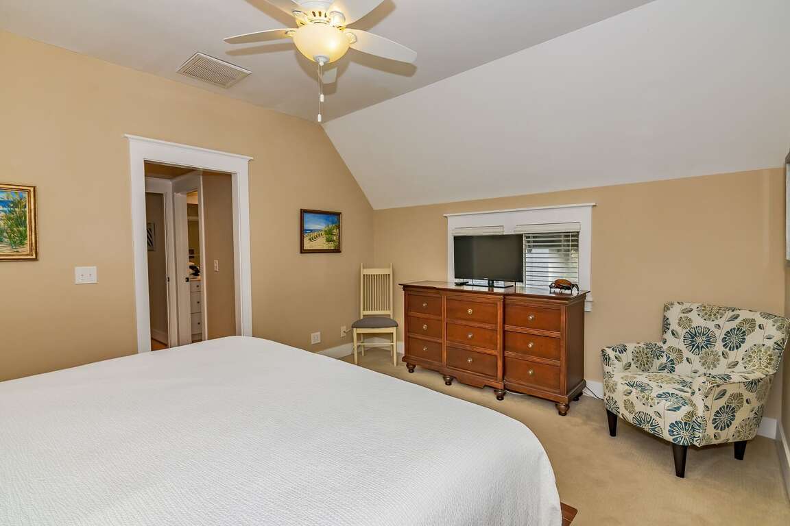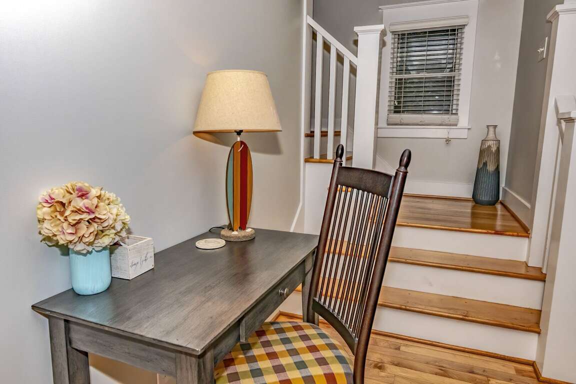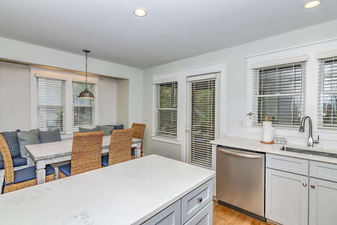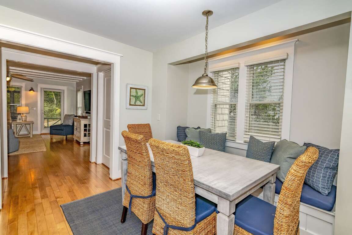You can relax in the living room, watch a movie, play games, or simply sit back and relax. The eat-in kitchen has a table with seating for seven people and a built-in bench. The kitchen has stainless steel appliances, and all the necessary equipment to cook after a beach day. You can dine on the porch or enjoy a glass of wine with hors-d'oeuvres.