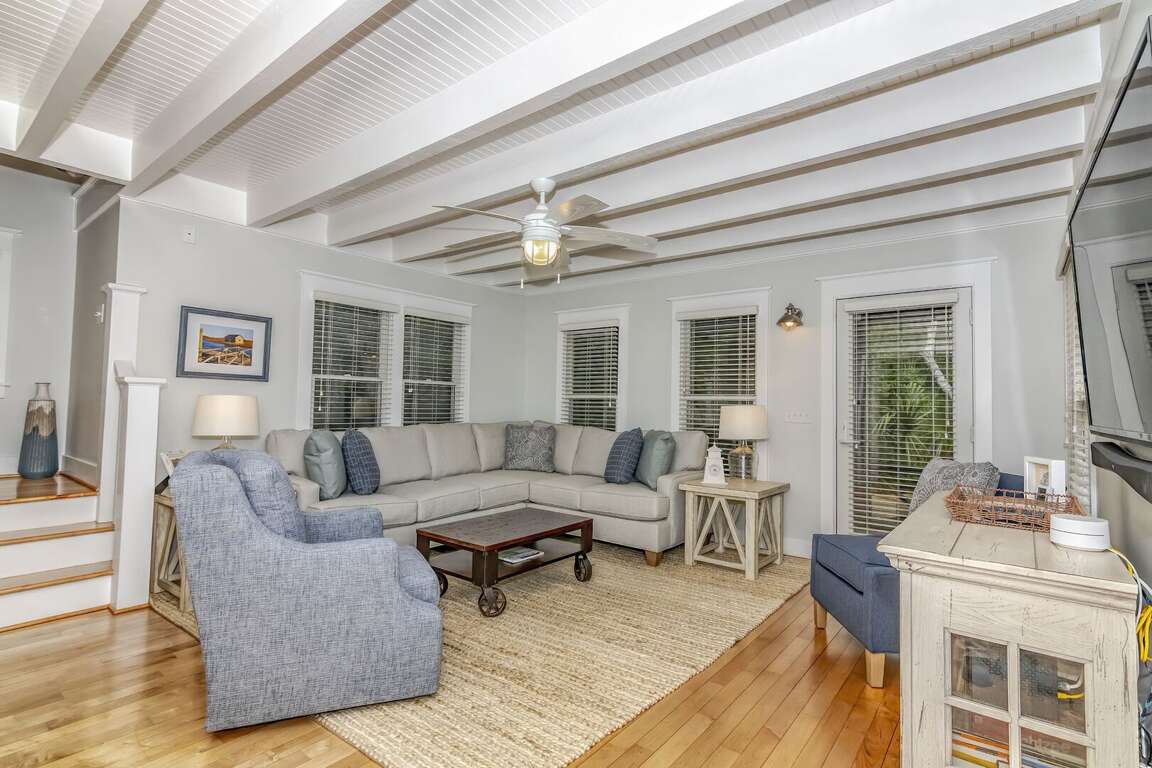 We love Bald Head Island and have been coming for about 9 years (1-3 times a years) We really enjoyed this home. It is in our top 3!!! The crofter space was a nice bonus. There are two screened in porches and also a community gazebo to enjoy the night time breezes without worrying about the bugs! East beach is our favorite spot and it is close by. You can hear the ocean at night from the porches or if windows are open... The golf carts were the best ones we've had at any rental. The furniture in the living room was very comfortable and clean. The only thing that may be a concern is the Deep bathtub in the master bedroom. I felt a little nervous about climbing in and out of it and I don't have mobility issues... it's just really really deep! The kitchen is quite small but it has a large pantry and everything you need. Air worked great. Amazon Alexa was set up and fun to use. I accidentally unplugged the WiFi for a few hours and caused a mass panic with teenagers because in this location the cell service is very bad. I could not make any calls or use my cell hotspot. With the WiFi working we were able to make WiFi calls and use laptops. I do think there is a problem with the WiFi in the crofter space but we didn't mind because it meant that the teenagers were forced to come in the house and hang out with us.. . The house has so many pretty decorations and new linens and duvet covers. It felt very cozy and clean. The conservatory is nearby with activities and a cute shop. In the summer they have icees and snacks there also. Lovely spot on Bald Head Island. Brandy the property manager always makes our vacations wonderful. Any problems or questions she answers immediately. Thanks for a wonderful stay!!