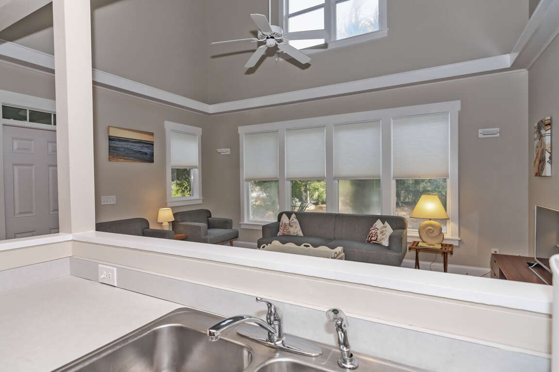 Cute cottage was all we needed. Adequately supplied kitchen and garage. Nice large golf cart to haul the supplied boogie boards, chairs, and coolers to the beach. Love staying in the middle of the island with lush vegetation.