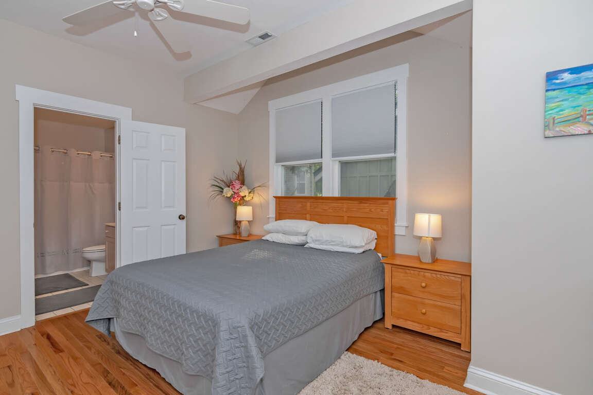 Located within the vibrant heart of Bald Head Island, Sabal Palm Cottages boasts a charming combination of modern comfort and classic coastal allure, offering guests a serene retreat surrounded by hardwoods and ample porch space. The property's focus on porch relaxation allows guests to unwind in a peaceful setting, enjoying the gentle coastal breeze and lush surroundings. Inside, the modern living room furniture complements the coastal theme, providing a cozy space for relaxation. With hardwoods throughout the home, guests are treated to a warm and inviting atmosphere. Accommodating up to 6 people, with a blow-up mattress available, Sabal Palm Cottages ensures a comfortable stay. Additionally, a 6-passenger golf cart is included, adding convenience to explore the island's beauty.